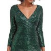 Tmavě zelené smaragdové společenské šaty působí luxusně a výrazně. Jsou ušité z příjemného a mírně poddajného materiálu, který se pohodlně přizpůsobí postavě a dodá jistotu při nošení. Výstřih do V opticky prodlužuje postavu, dlouhé rukávy přinášejí eleganci a pohodlí. Vypasovaný střih krásně tvaruje ženskou siluetu a přední rozparek dodává šatům atraktivní detail.