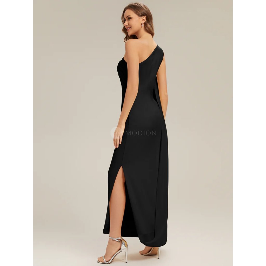 Dlouhé černé společenské šaty z žerzeje a šifonu na jedno rameno představují výrazný a luxusní model ideální na ples, galavečer i formální společenské události. Nadčasová černá barva působí elegantně, sebevědomě a velmi sofistikovaně. Tyto dlouhé společenské šaty jsou perfektní volbou pro ženy, které chtějí zaujmout moderním střihem a výrazným detailem.