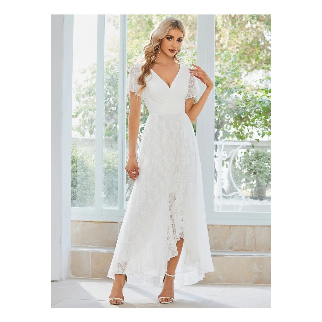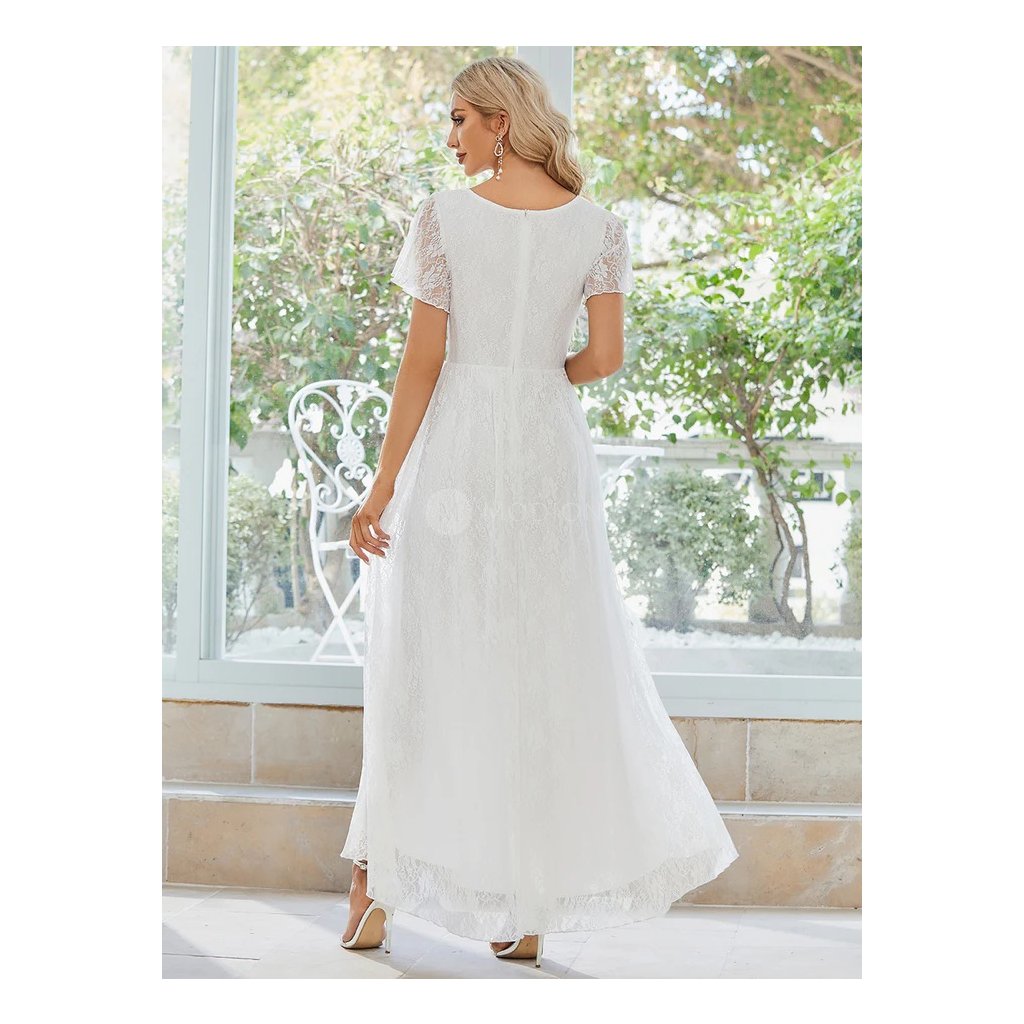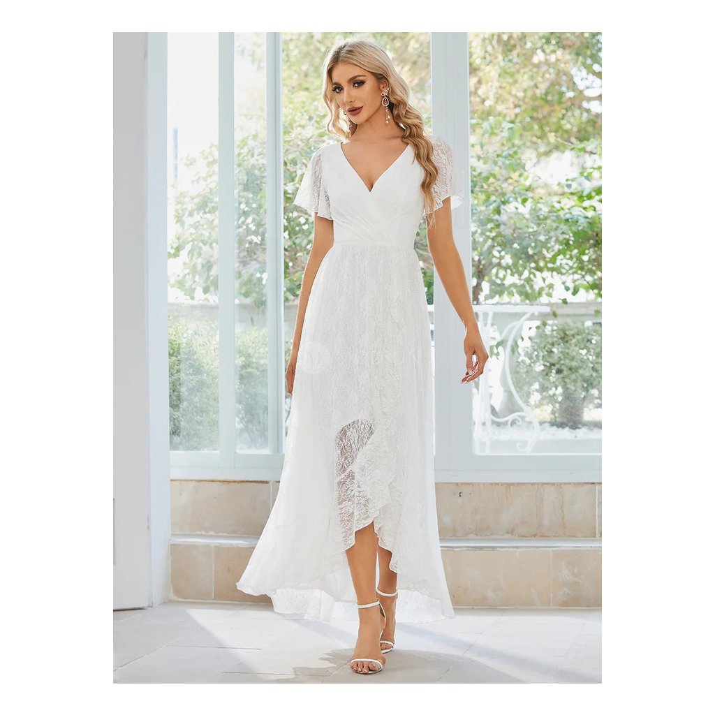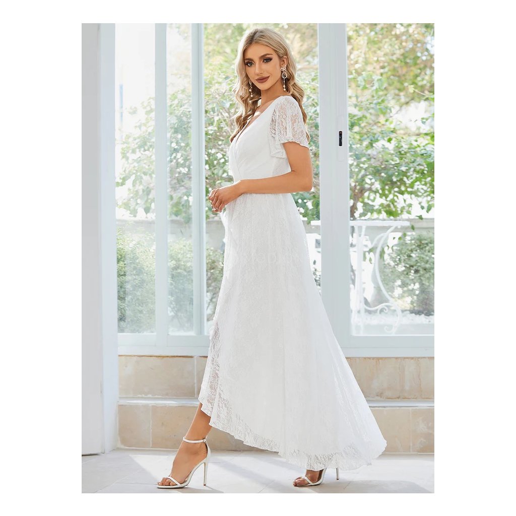 Společenské šaty ve sněhově bílém odstínu působí jemně, slavnostně a velmi elegantně. Čistá bílá barva podtrhuje nadčasový charakter modelu a dodává mu lehký, reprezentativní vzhled vhodný pro svatební i slavnostní události.