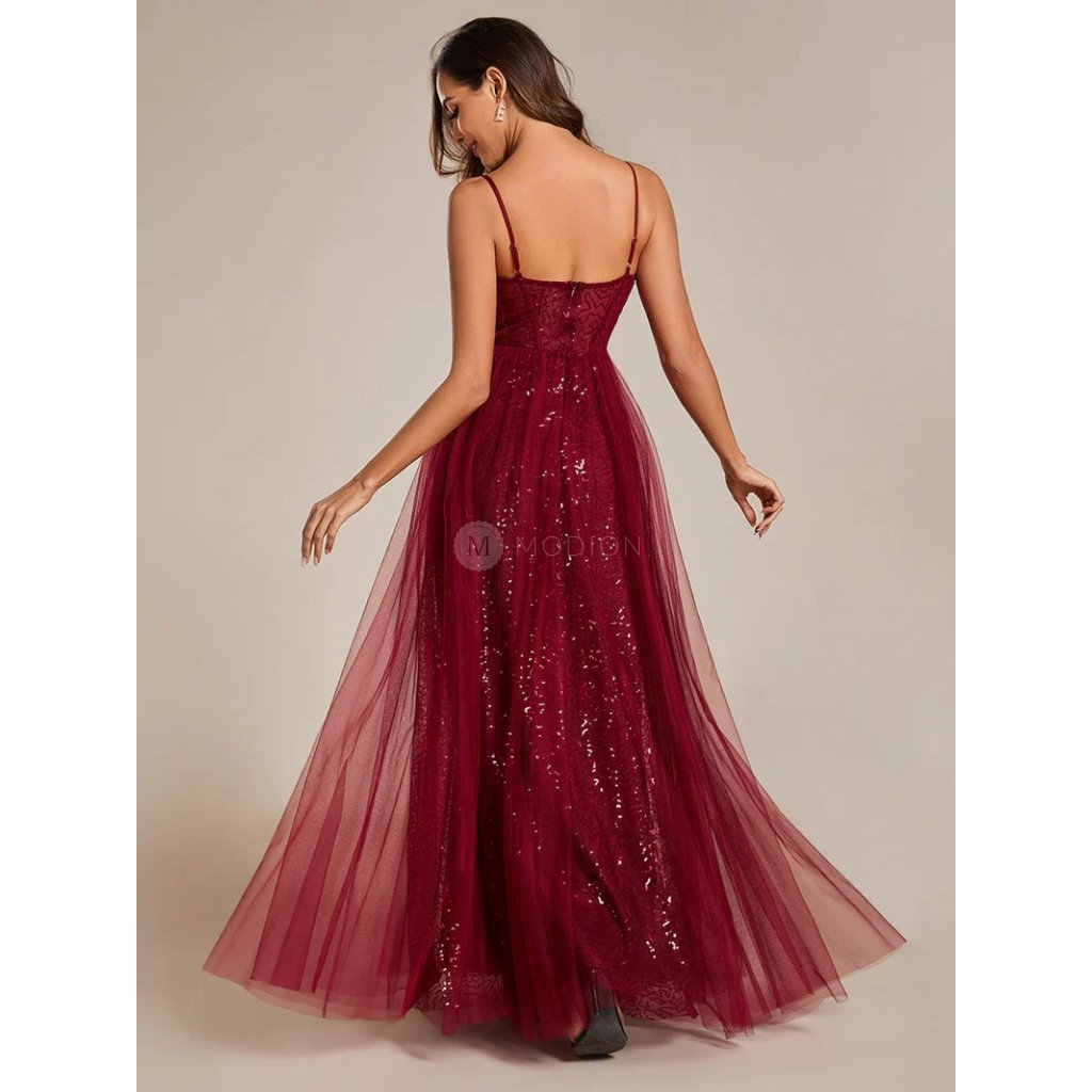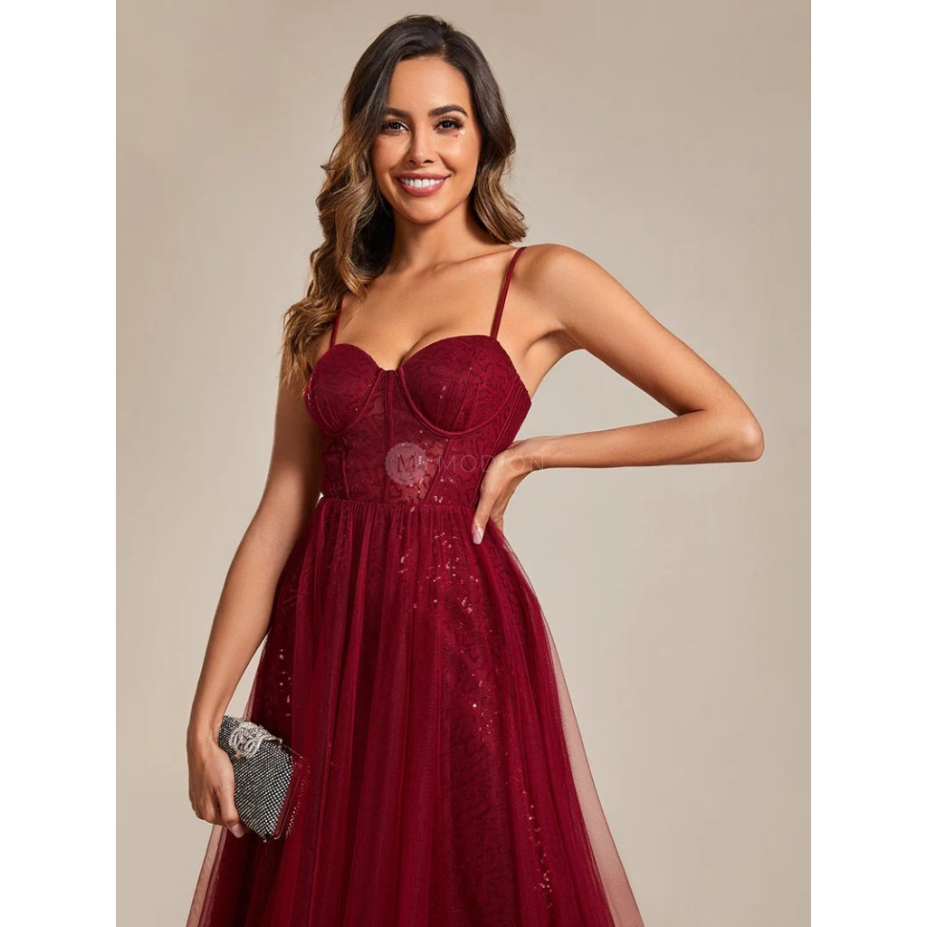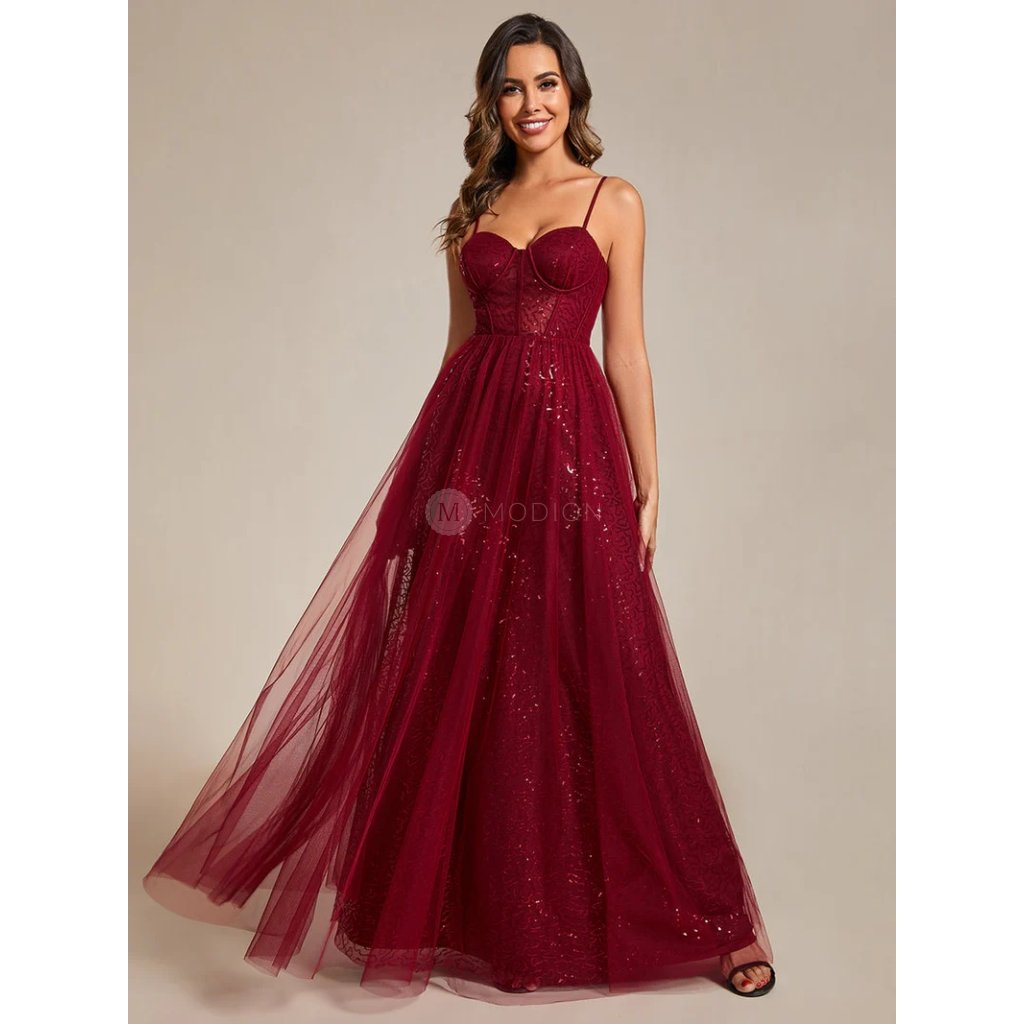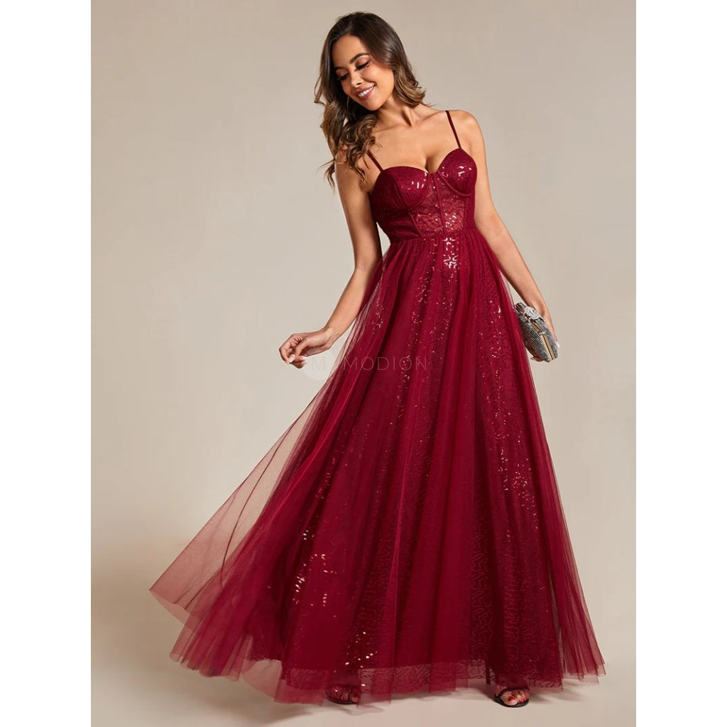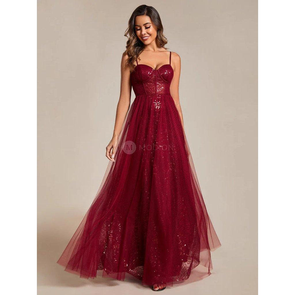 Dlouhé vínově červené společenské šaty působí elegantně, slavnostně a výrazně. Jsou ideální volbou pro ženy, které hledají reprezentativní večerní model s korzetovým živůtkem a výrazně ženskou siluetou vhodnou pro slavnostní a formální události.