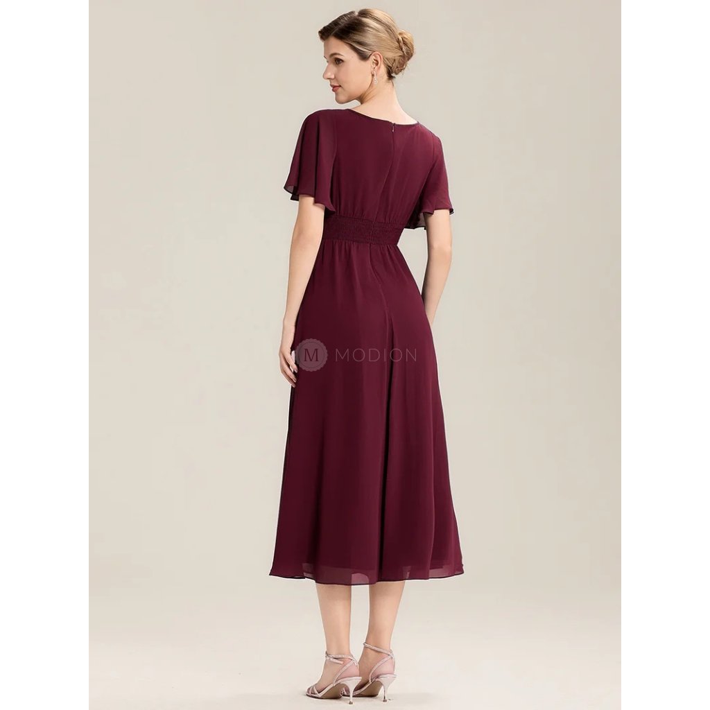 Červené společenské šaty midi šifonové s rukávem – Ever Pretty EE02463BD