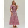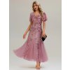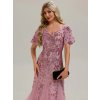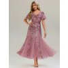 Společenské šaty dlouhé růžové tylové s flitry – model EE02547OD