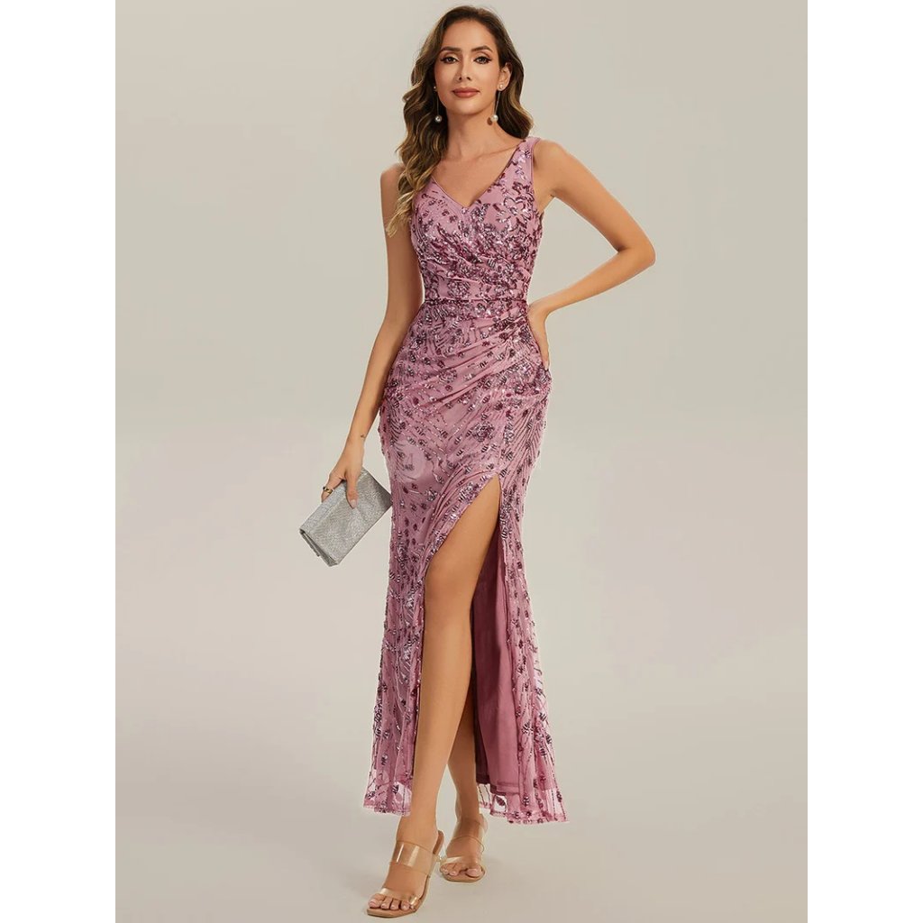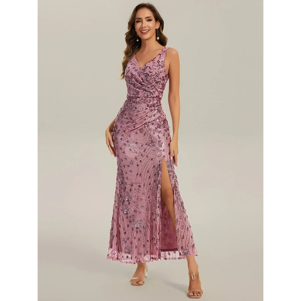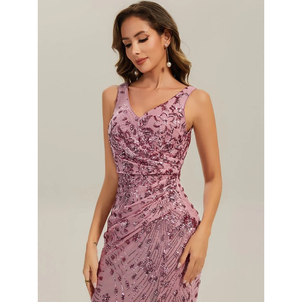 Růžové společenské šaty dlouhé flitrové – Ever Pretty EE02548OD