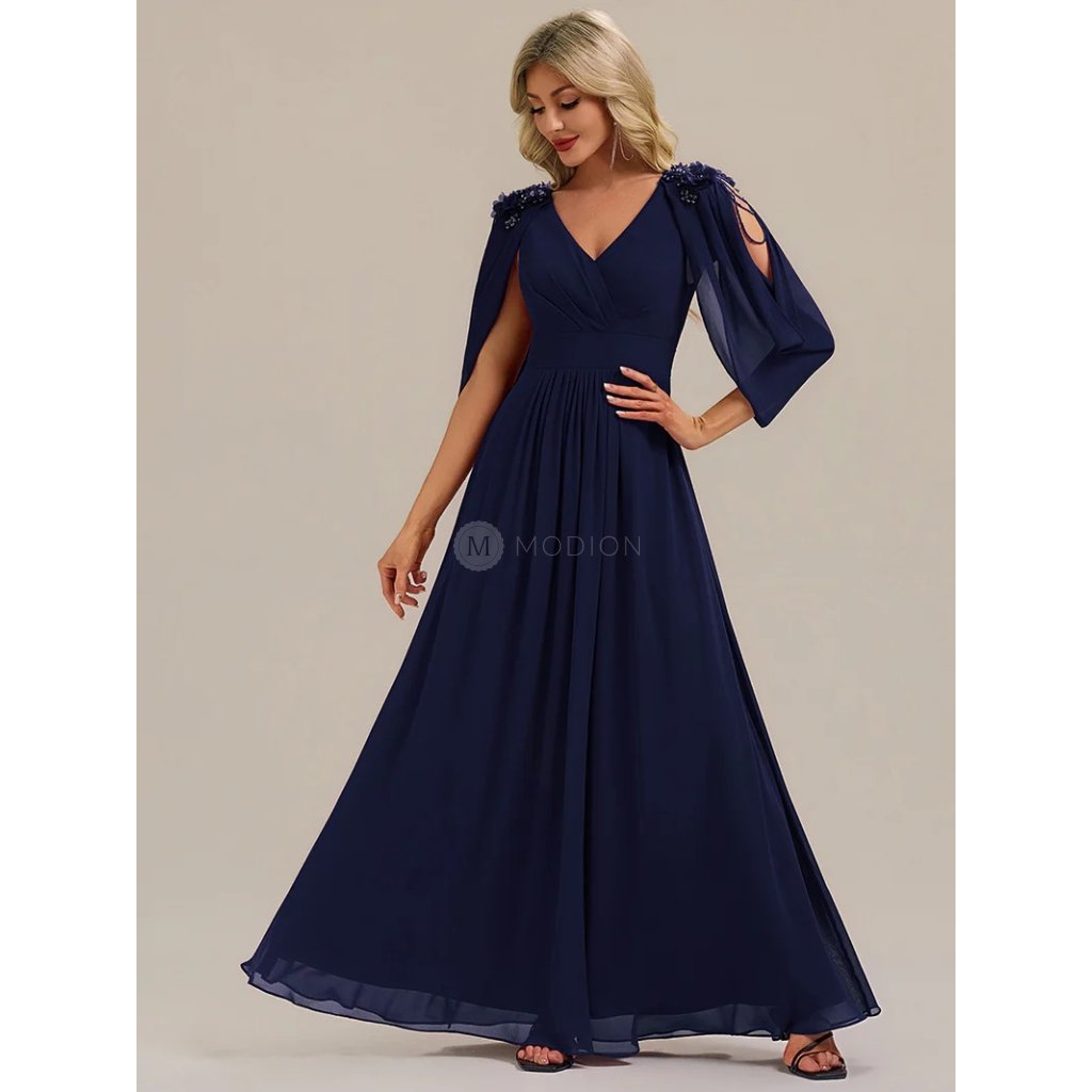 Dlouhé tmavě modré společenské šaty působí elegantně, slavnostně a velmi vkusně. Jsou ideální volbou pro ženy, které hledají výjimečný večerní model s propracovanými detaily, nadčasovým střihem a klidnou noblesou.