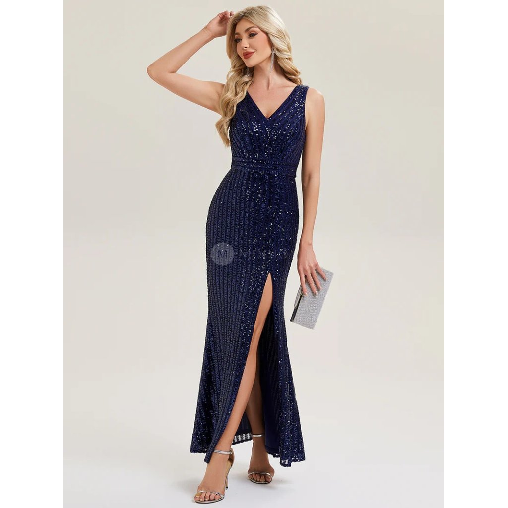 Tmavě modré společenské šaty dlouhé flitrové s rozparkem – Ever Pretty EE02583NB