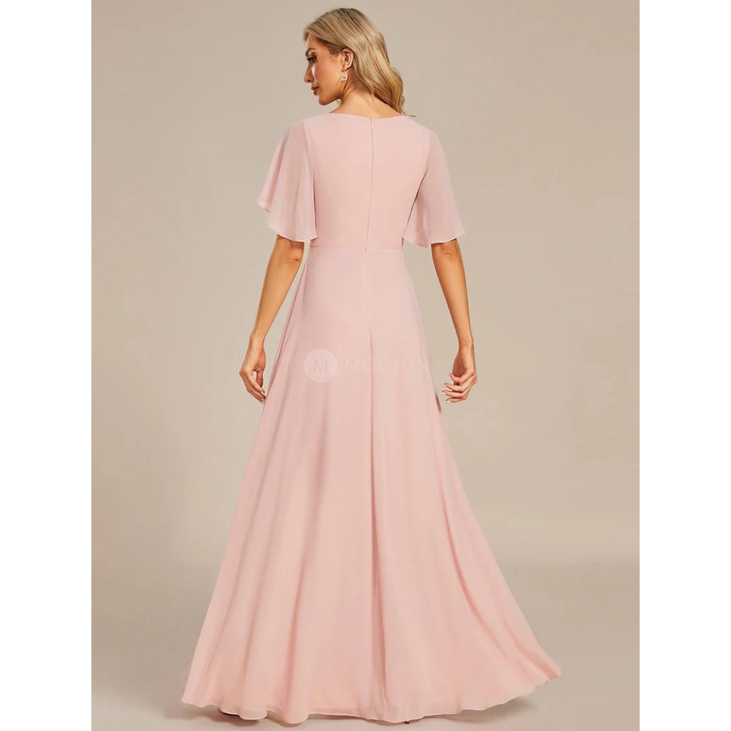 Společenské šaty dlouhé růžové šifonové – model EE01960PK