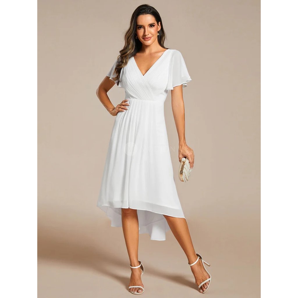 Společenské šaty ve sněhově bílém odstínu působí jemně, elegantně a velmi slavnostně. Čistá bílá barva dodává modelu svěží, lehký a nadčasový vzhled, který je vhodný nejen pro slavnostní, ale i letní příležitosti.