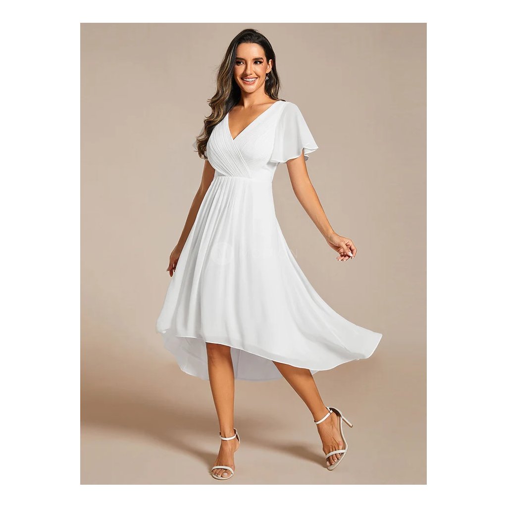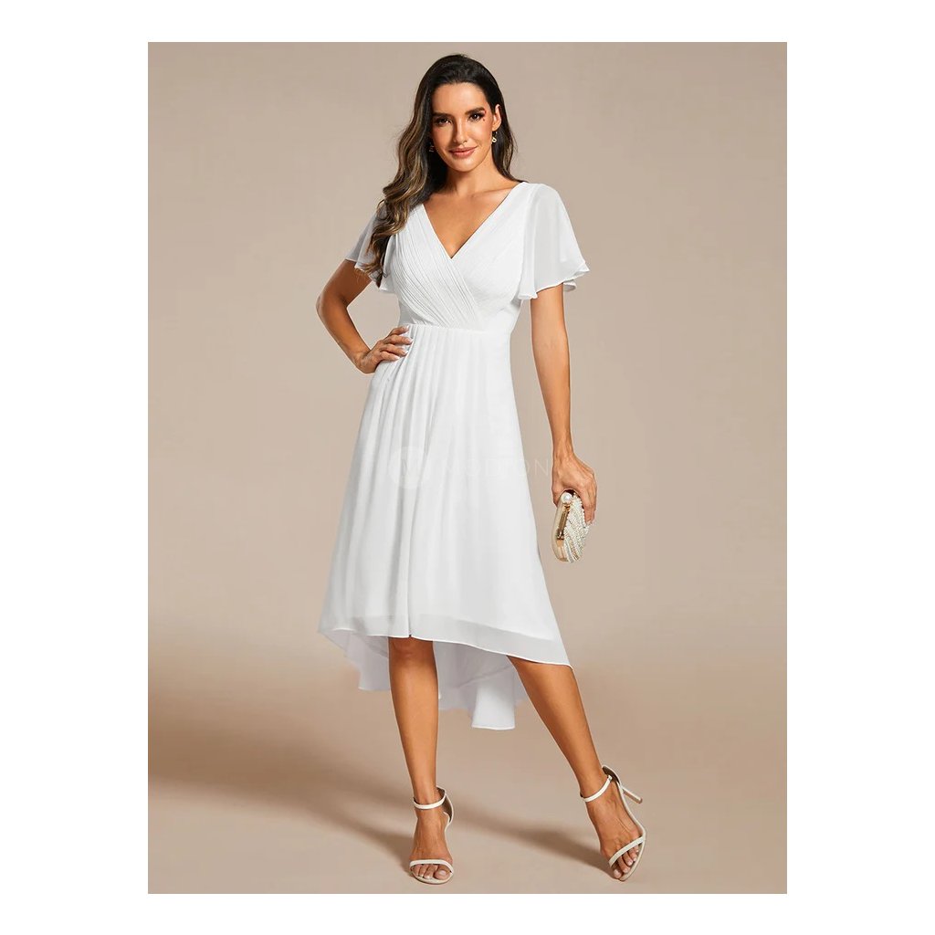 Bílé společenské šaty krátké šifonové – Ever Pretty EG01923WH46