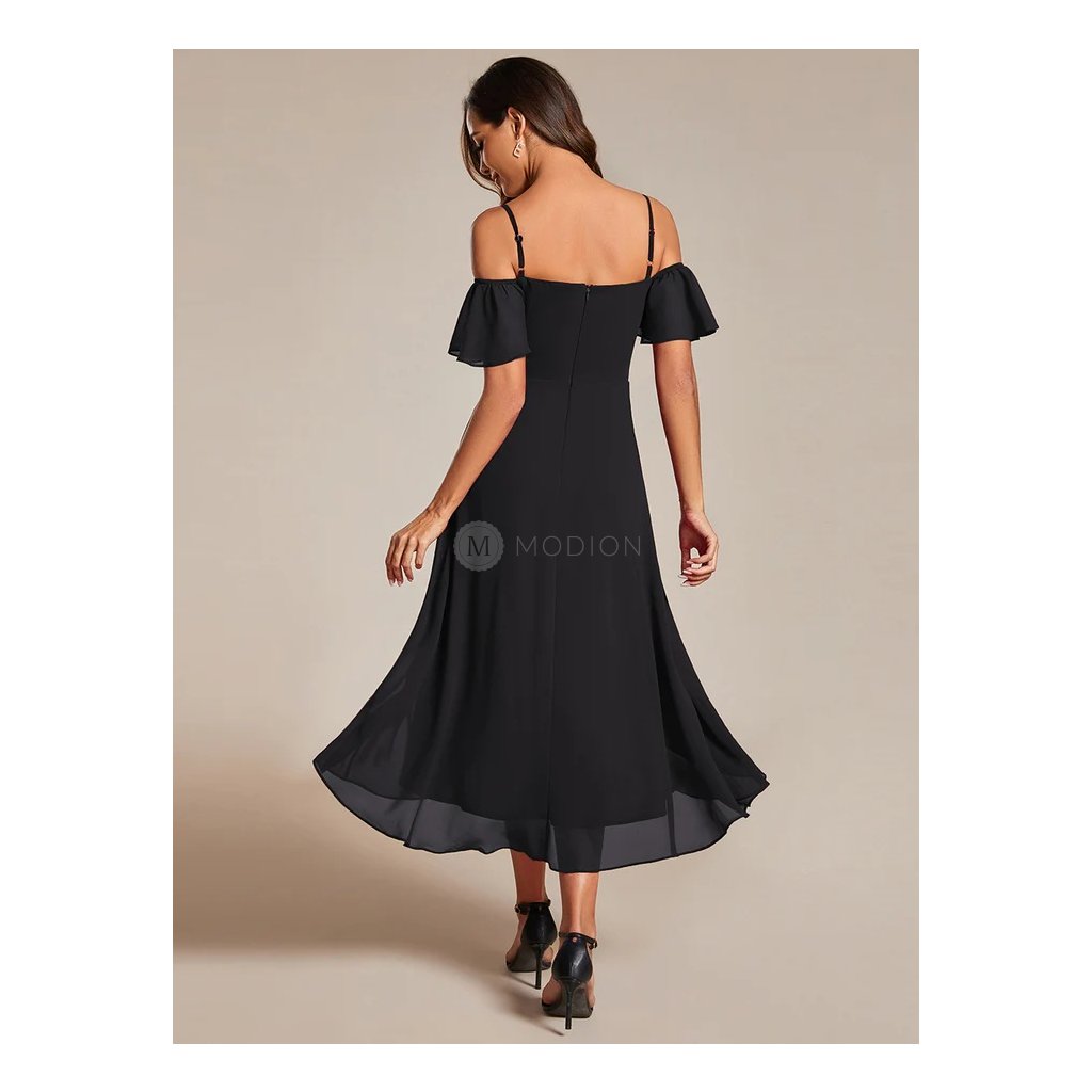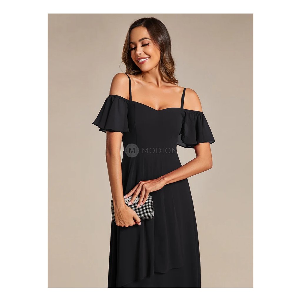 Midi černé společenské šaty z lehkého šifonu ve splývavém provedení působí nadčasově, elegantně a velmi vkusně. Jsou ideální volbou pro ženy, které hledají lehký, ženský a zároveň reprezentativní model pro společenské i slavnostní události.