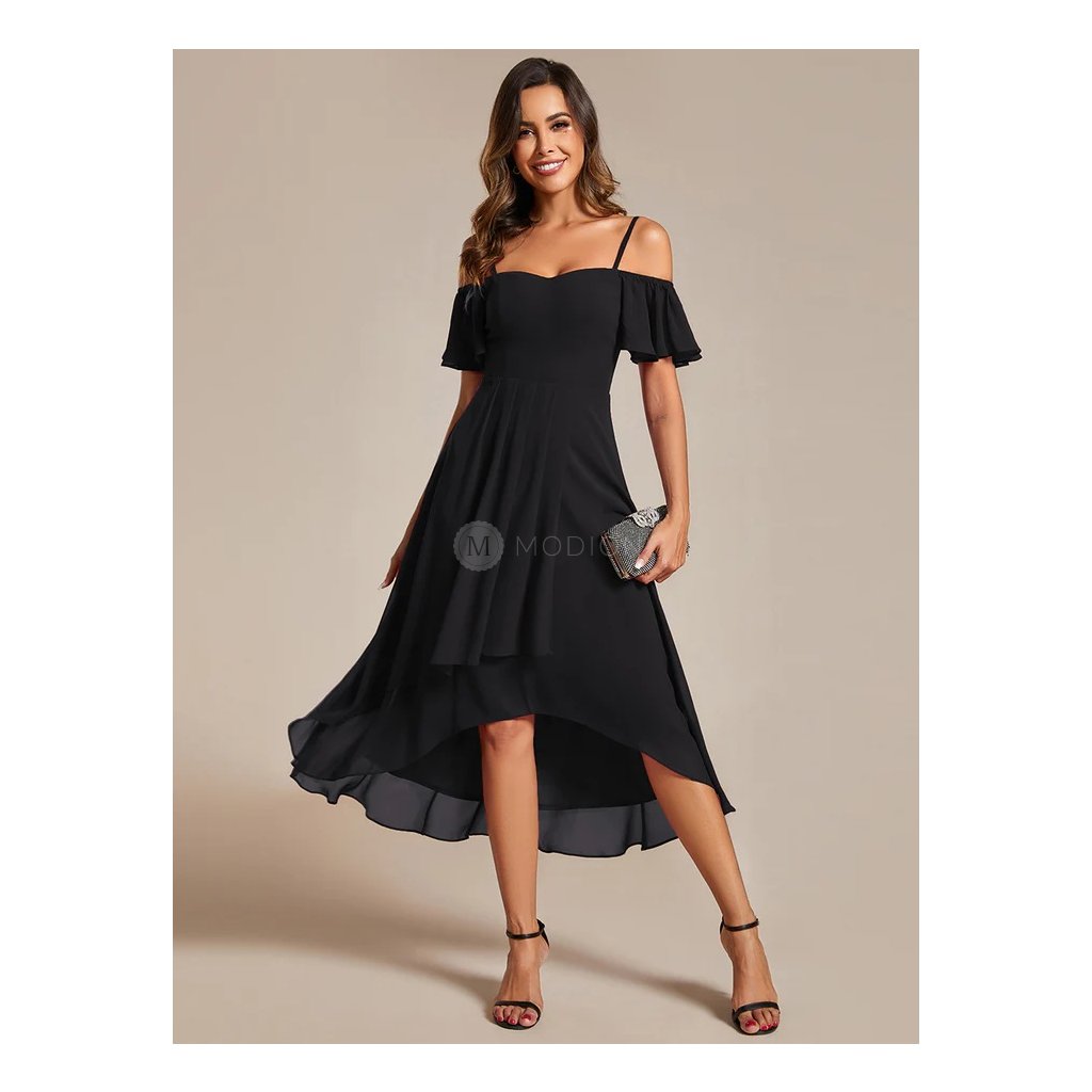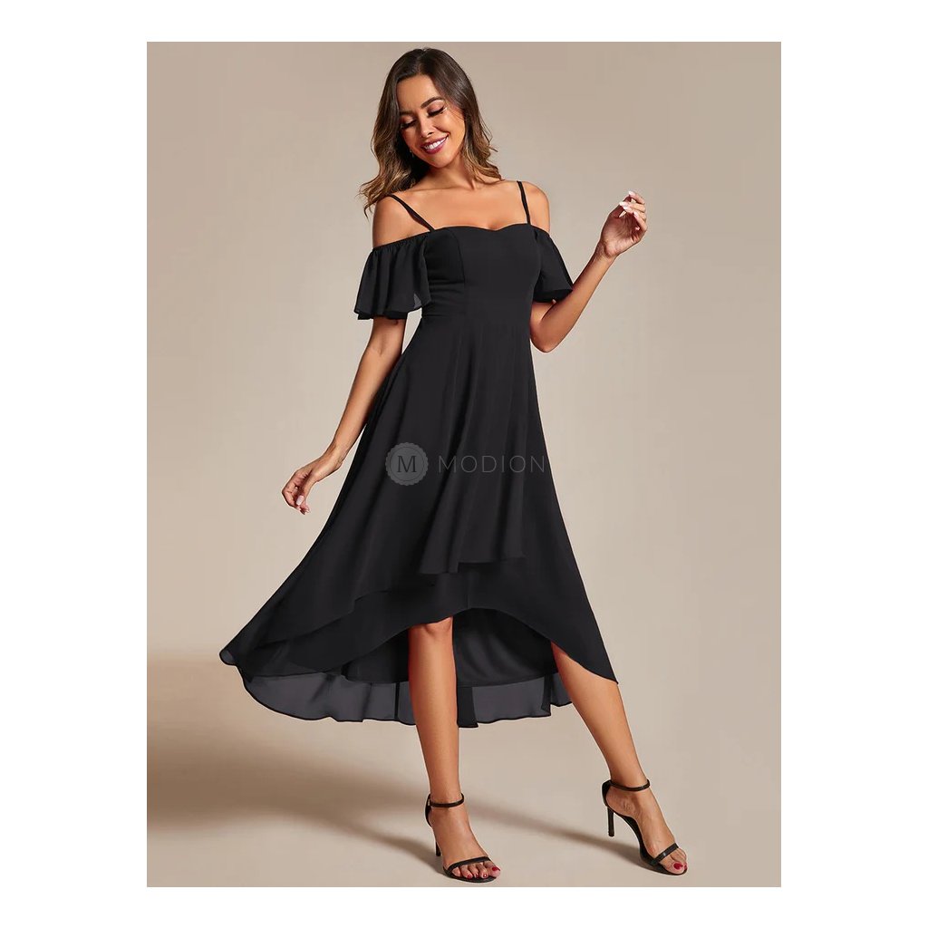 Černé společenské šaty asymetrické šifonové – Ever Pretty EG02103BK