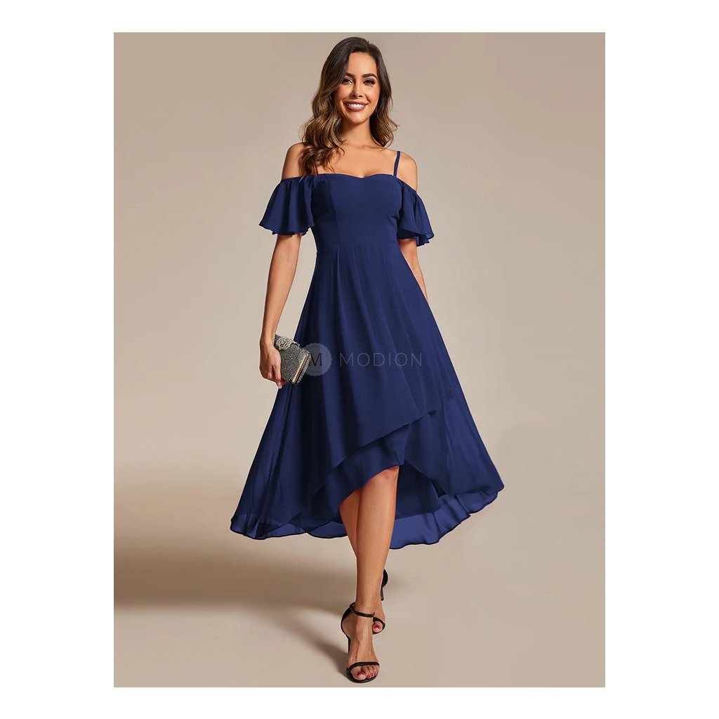 Modré společenské šaty asymetrické šifonové – Ever Pretty EG02103NB