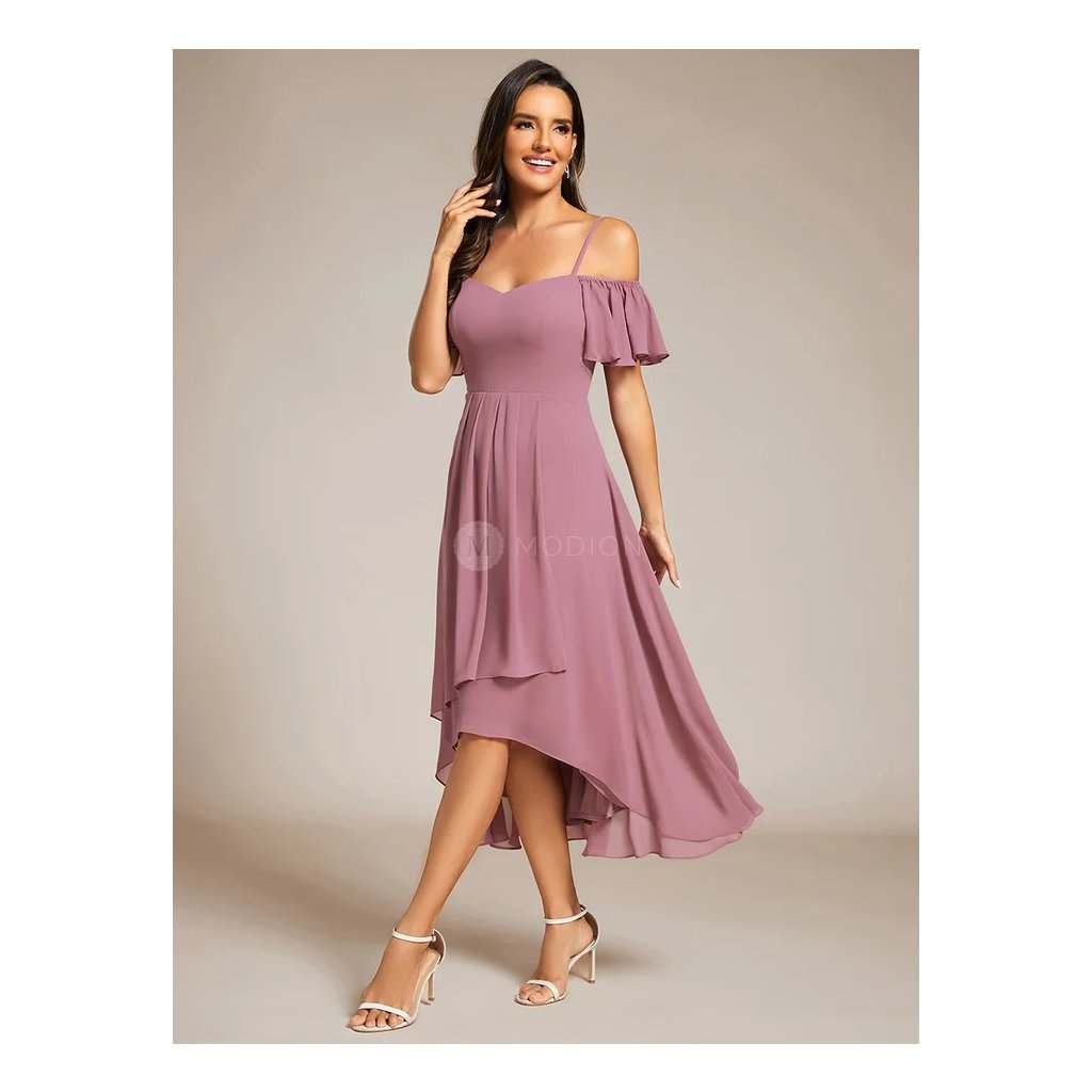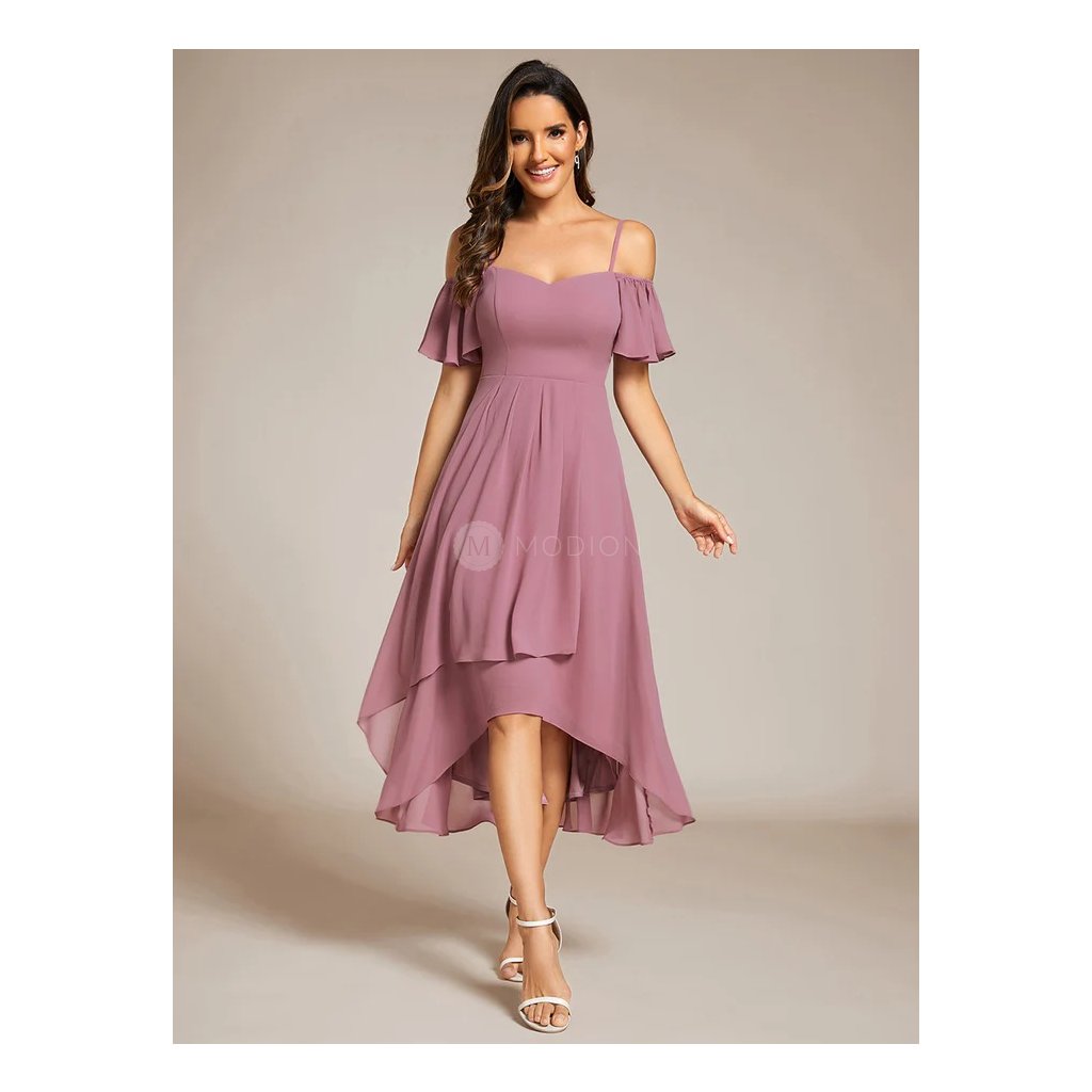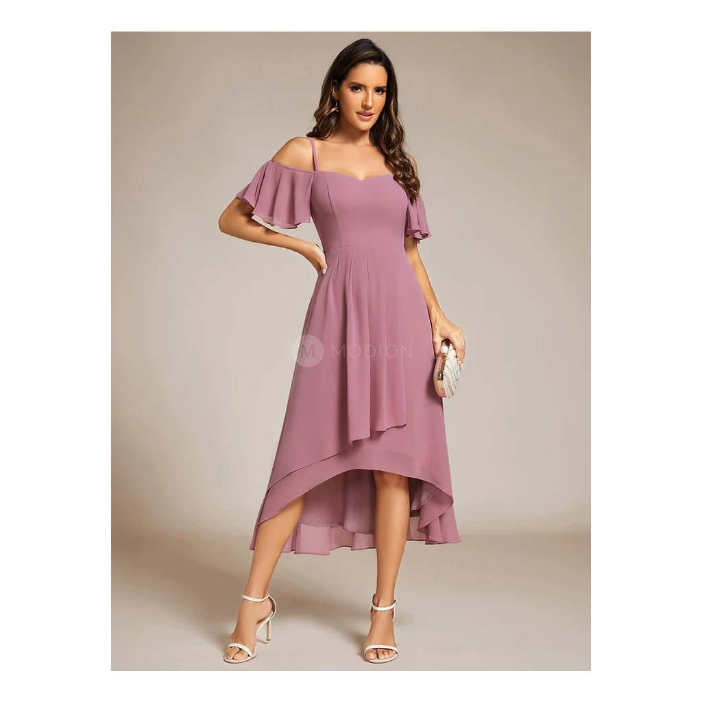 Růžové společenské šaty asymetrické šifonové – Ever Pretty EG02103OD