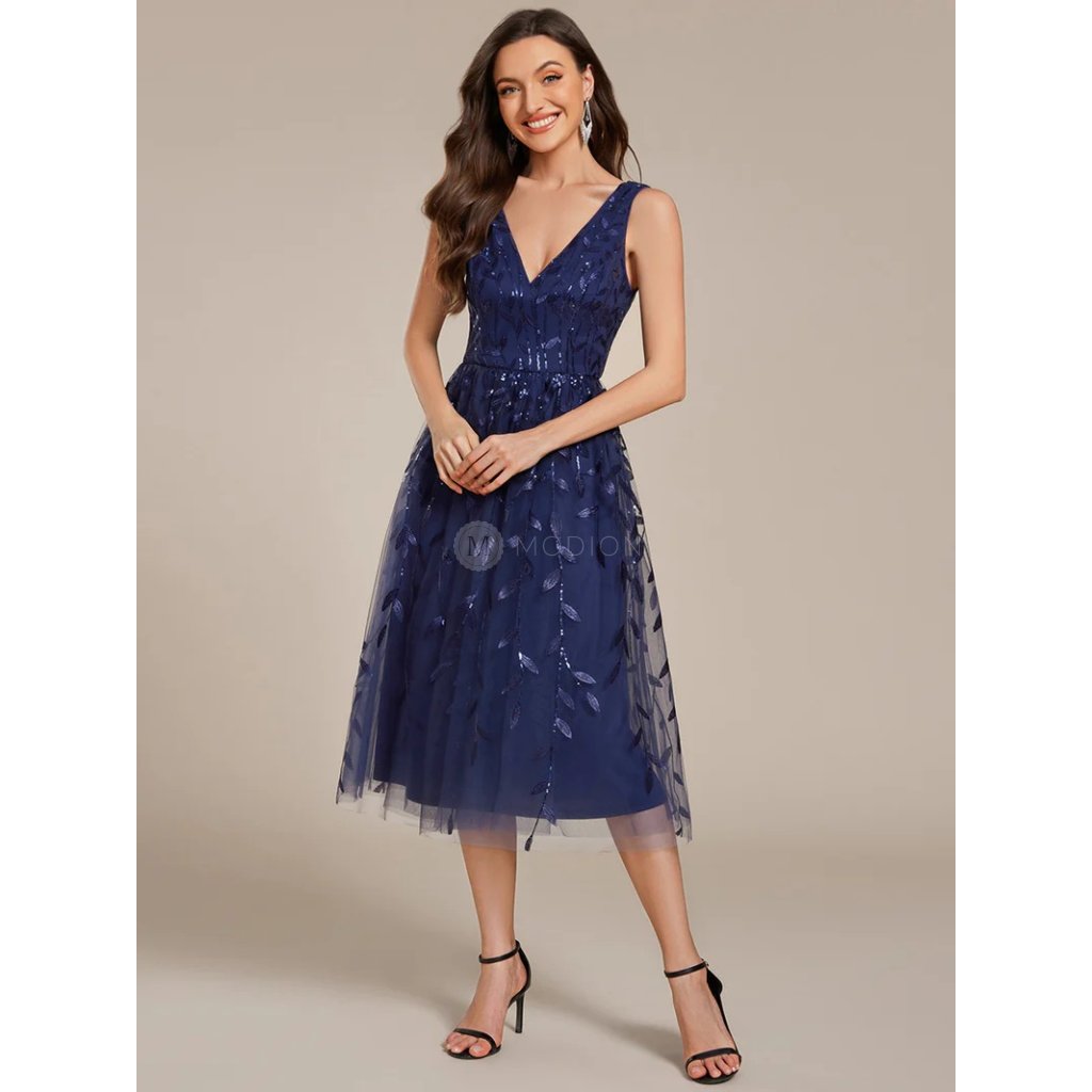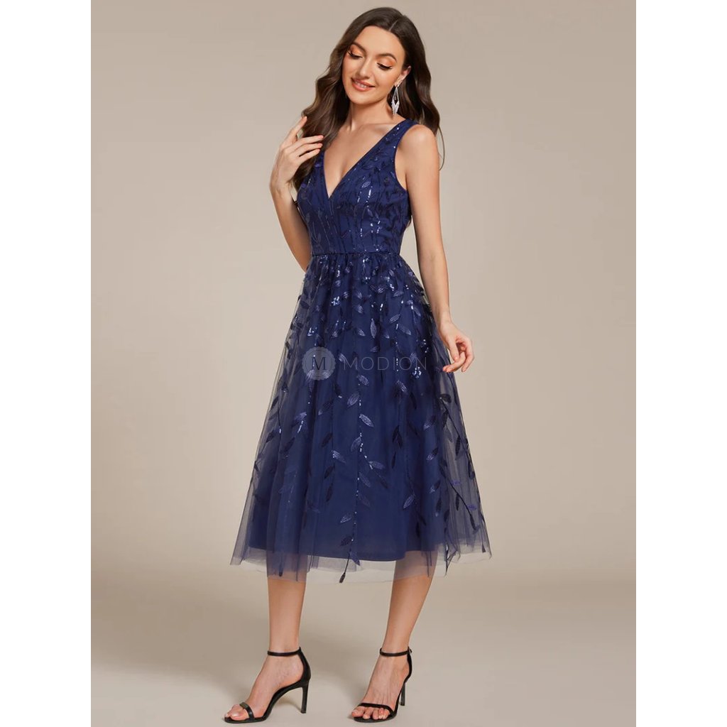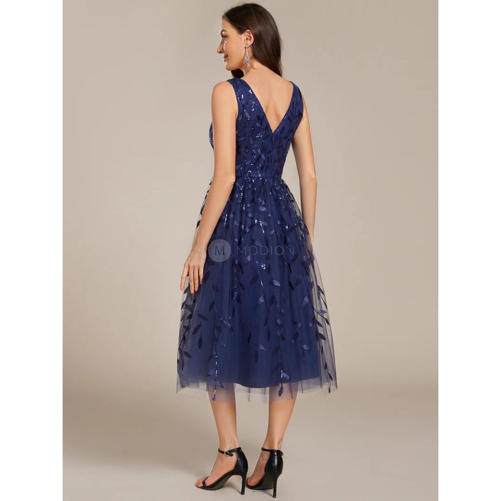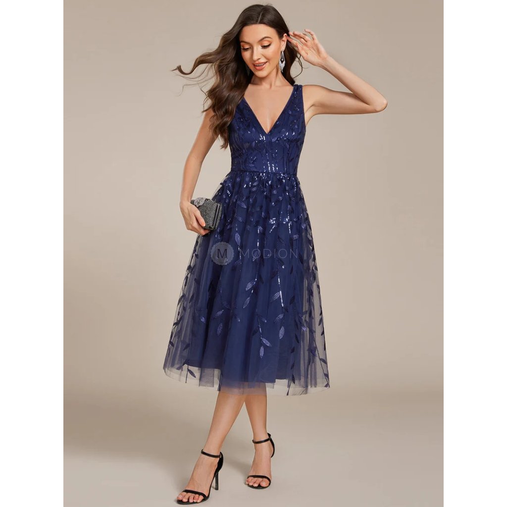 Společenské midi šaty tmavě modré – Valentina