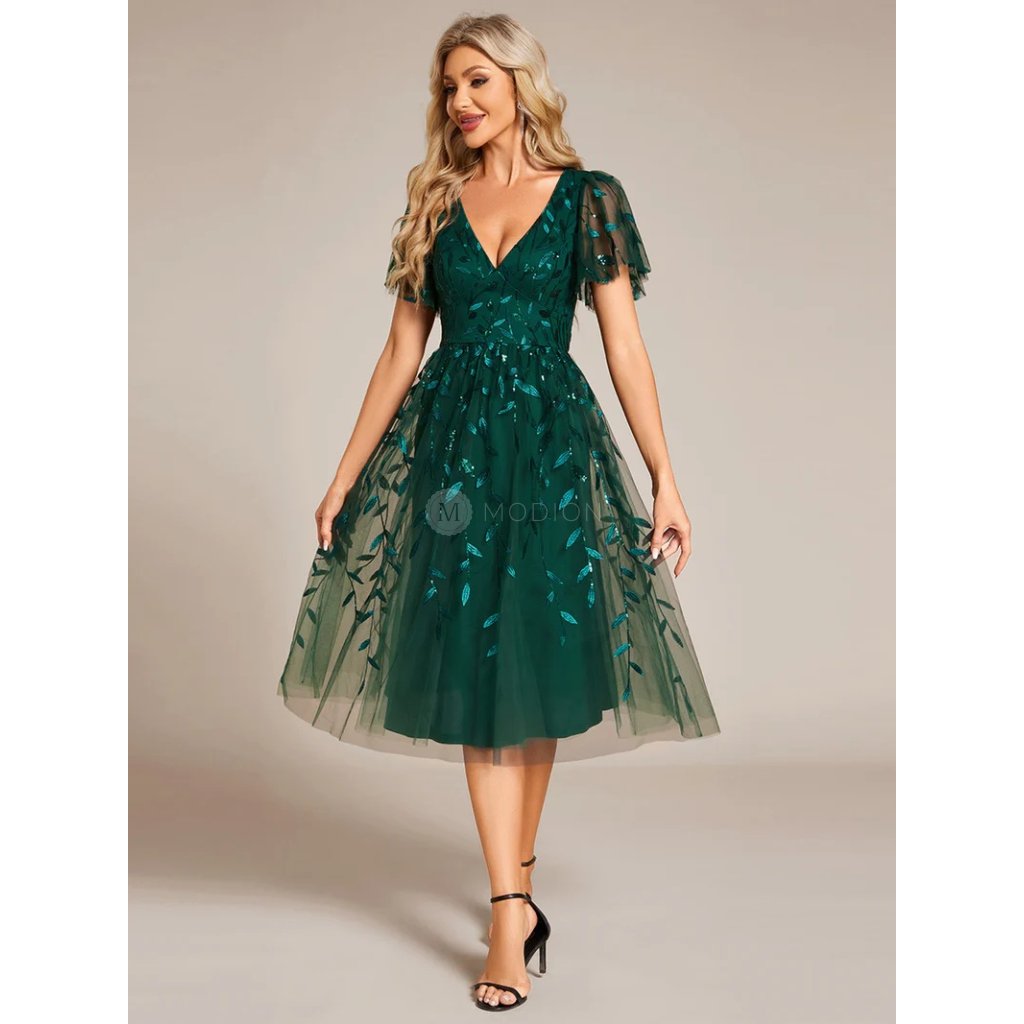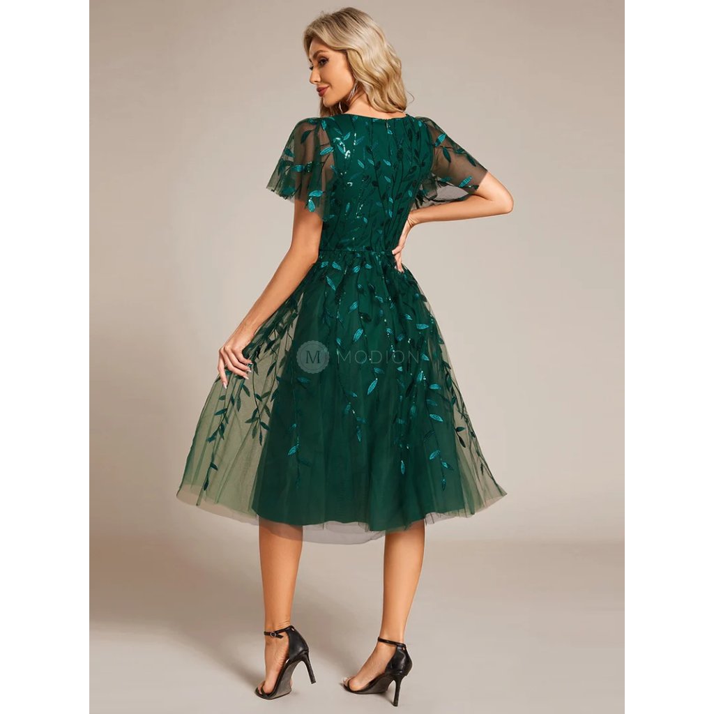 Společenské midi šaty smaragdové zelená – Elisabetta