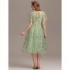 Krátké zelené plesové šaty s délkou pod kolena, zdobené jemným tylem a třpytivými flitry. Kulatý výstřih a vzdušná sukně zvýrazní vaši postavu na každé slavnosti.