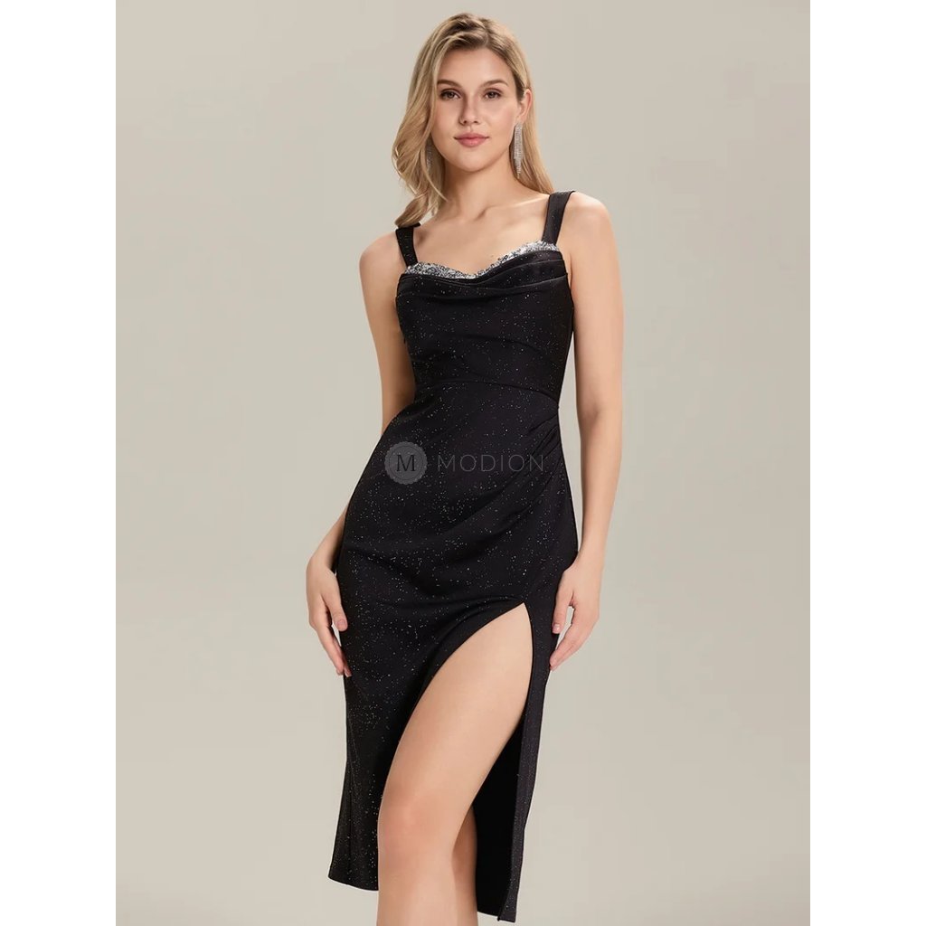 Černé společenské šaty krátké s rozparkem – Ever Pretty EG02395BK