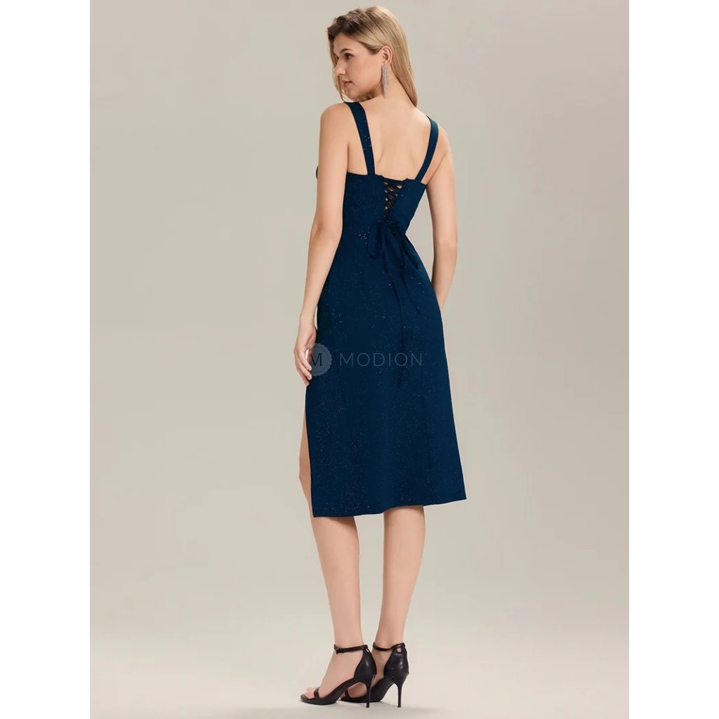 Krátké tmavě modré společenské šaty v třpytivém provedení působí elegantně, kultivovaně a velmi vkusně. Jsou ideální volbou pro ženy, které hledají slavnostní model s decentním leskem a moderní siluetou vhodnou pro večerní i formálnější události.