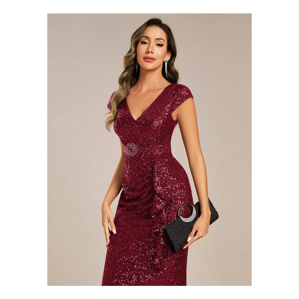 Společenské šaty flitrové červené s volánem – model EG05268BD