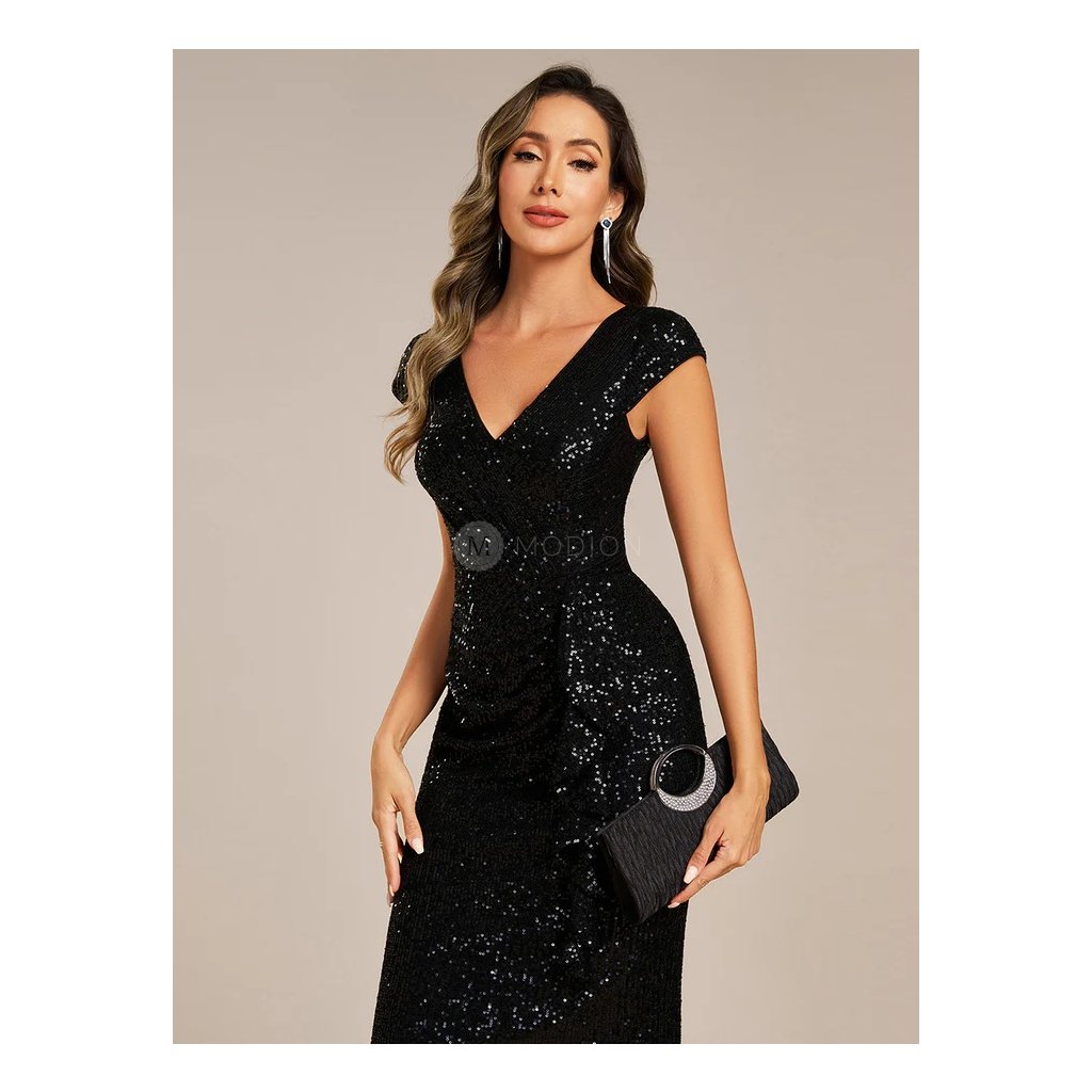 Společenské šaty flitrové černé s volánem – model EG05268BK