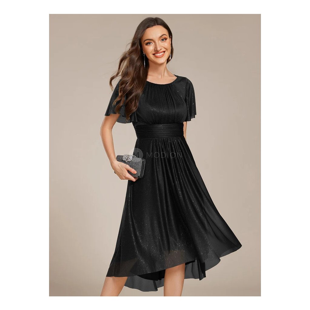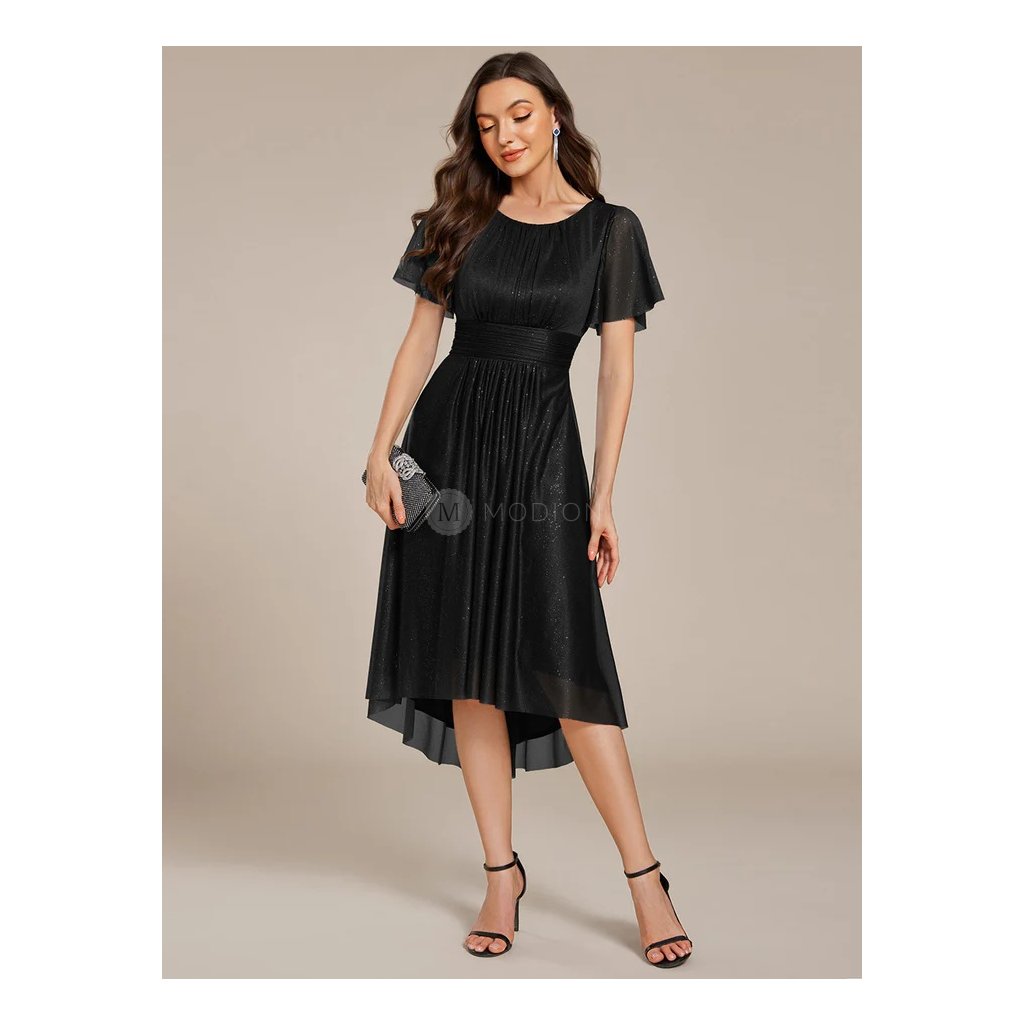 Společenské šaty midi černé šifonové třpytivé – Ever Pretty EG55159BK