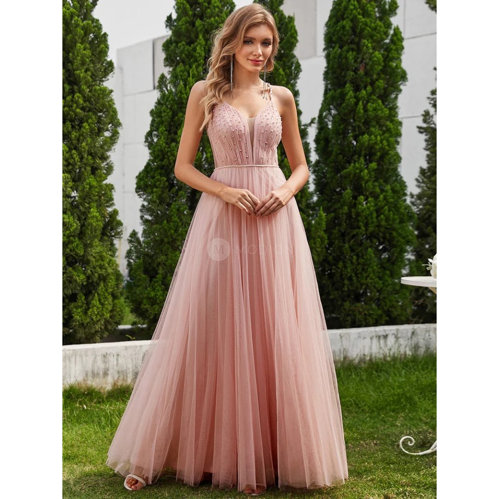Růžové společenské šaty tylové dlouhé – Ever Pretty EH02075PK