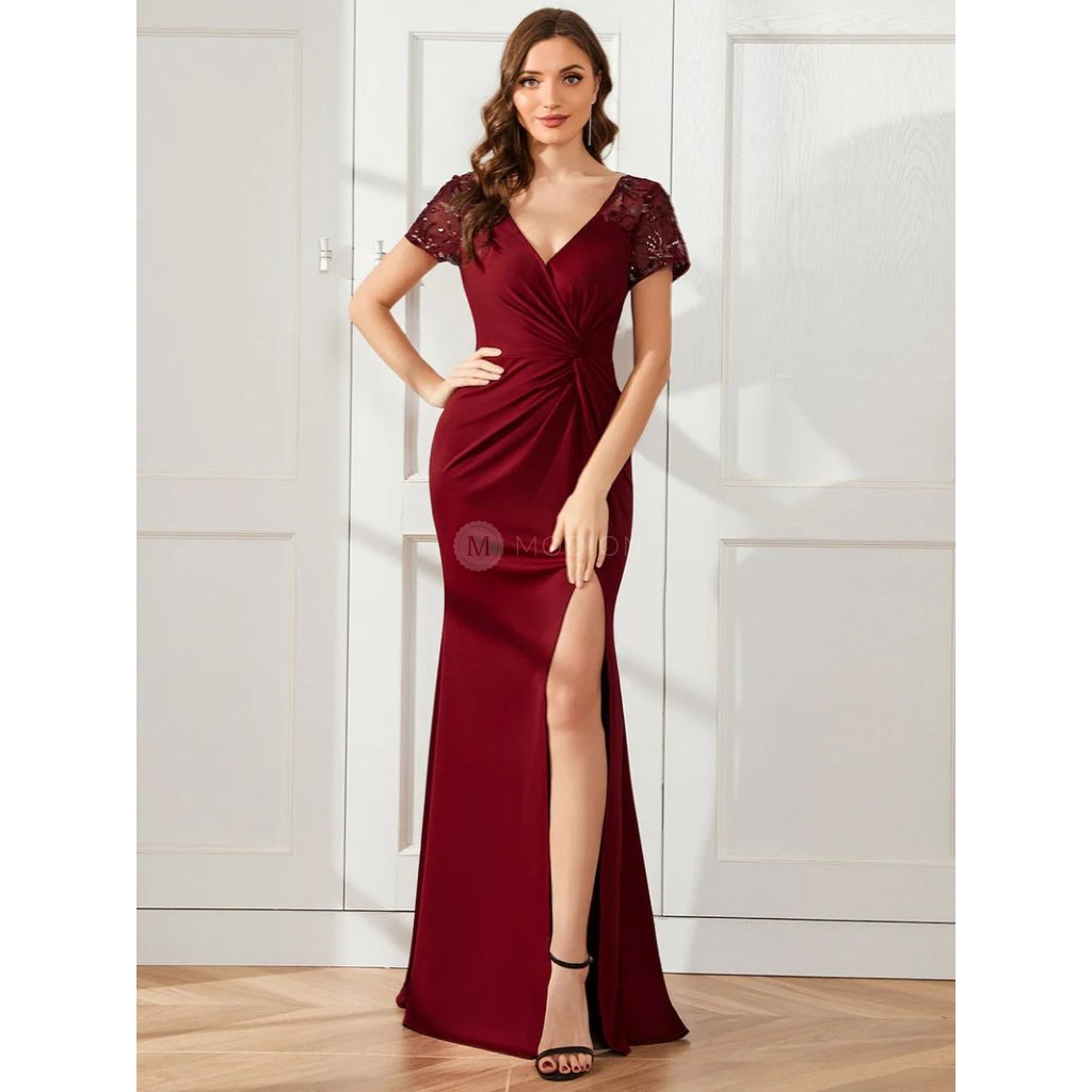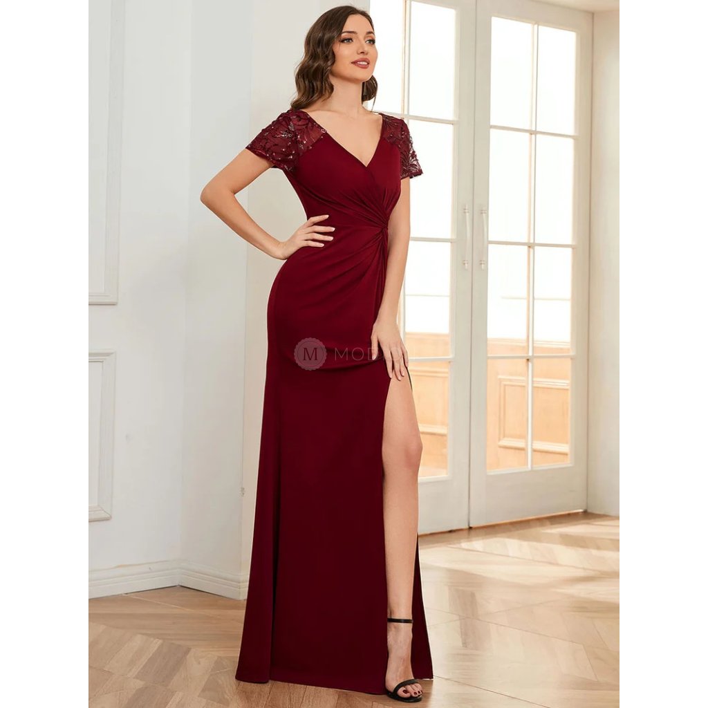 Dlouhé vínově červené společenské šaty působí elegantně, slavnostně a velmi žensky. Jsou ideální volbou pro ženy, které hledají pohodlný a zároveň reprezentativní večerní model s jemným zdobením.