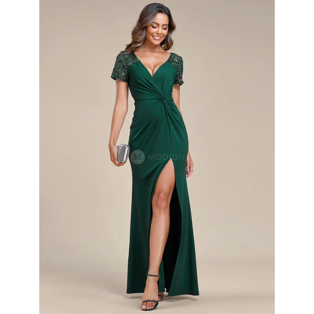 Zelené společenské šaty dlouhé s rozparkem a flitry – Ever Pretty EM01669DG