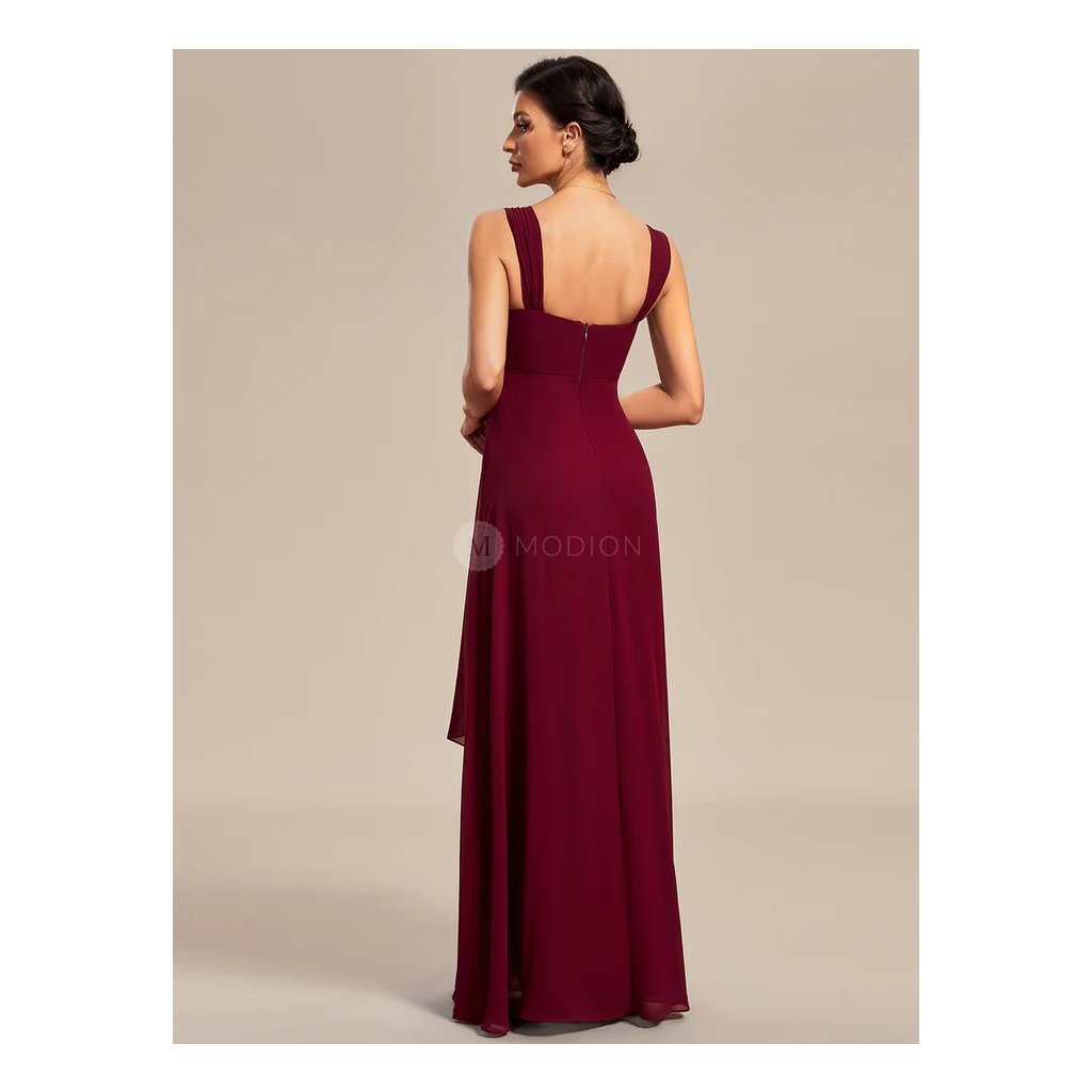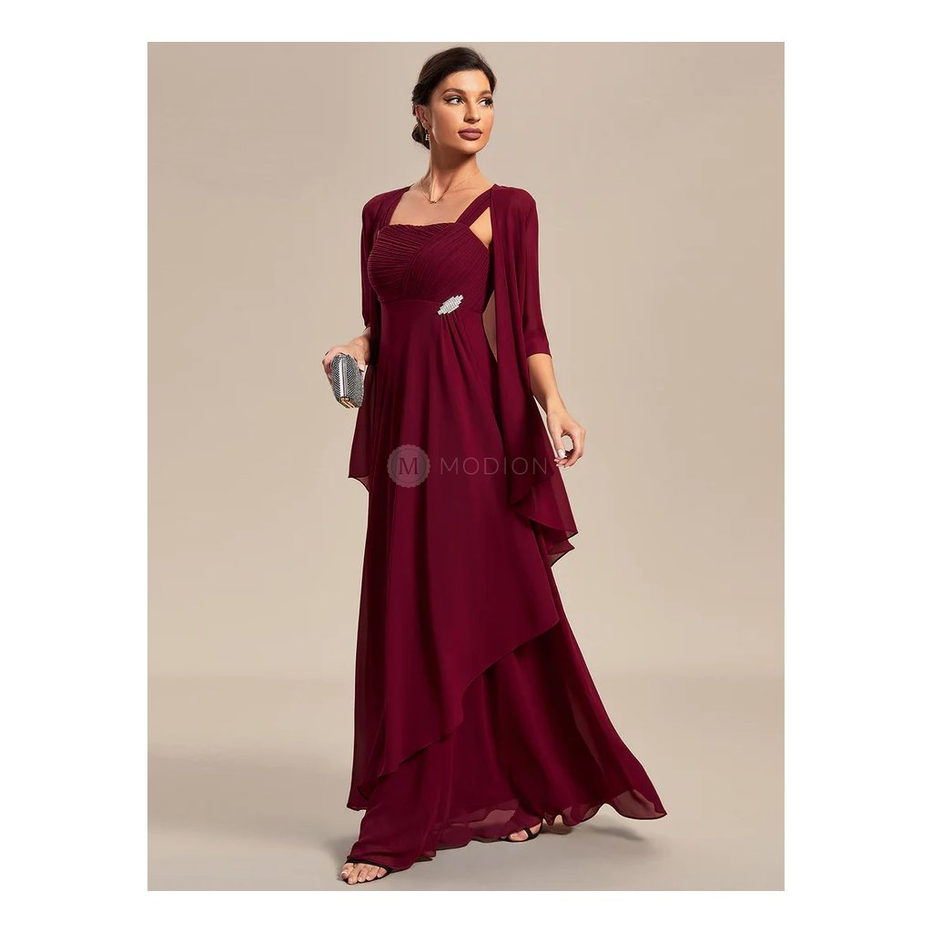 Dlouhé vínově červené společenské šaty z lehkého šifonu doplněné ladícím kabátkem působí elegantně, slavnostně a velmi žensky. Jsou ideální volbou pro ženy, které hledají sofistikovaný model s vyšším komfortem a možností zakrytí paží při formálních událostech.