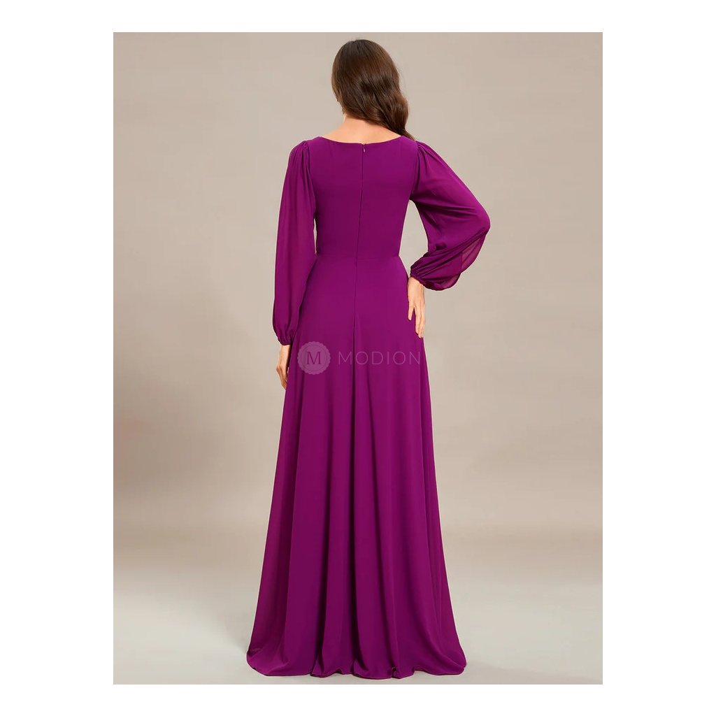 Společenské šaty fuchsiové šifonové dlouhý rukáv s rozparkem – model EP00461FU