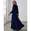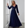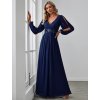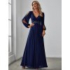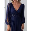Společenské šaty modré šifonové dlouhý rukáv s rozparkem – model EP00461NB