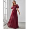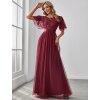 Společenské šaty červené dlouhé tylové s flitry - model EP00904BD