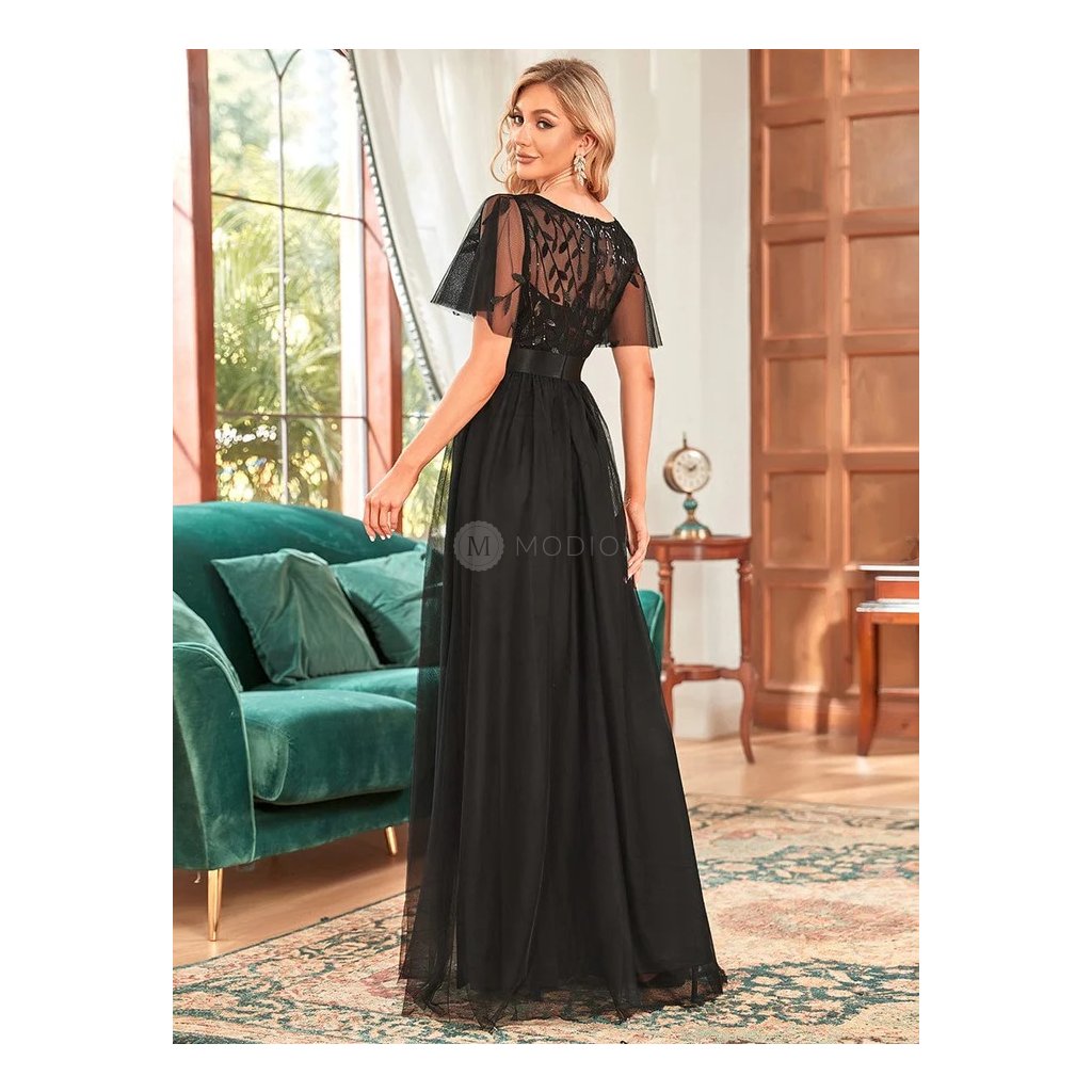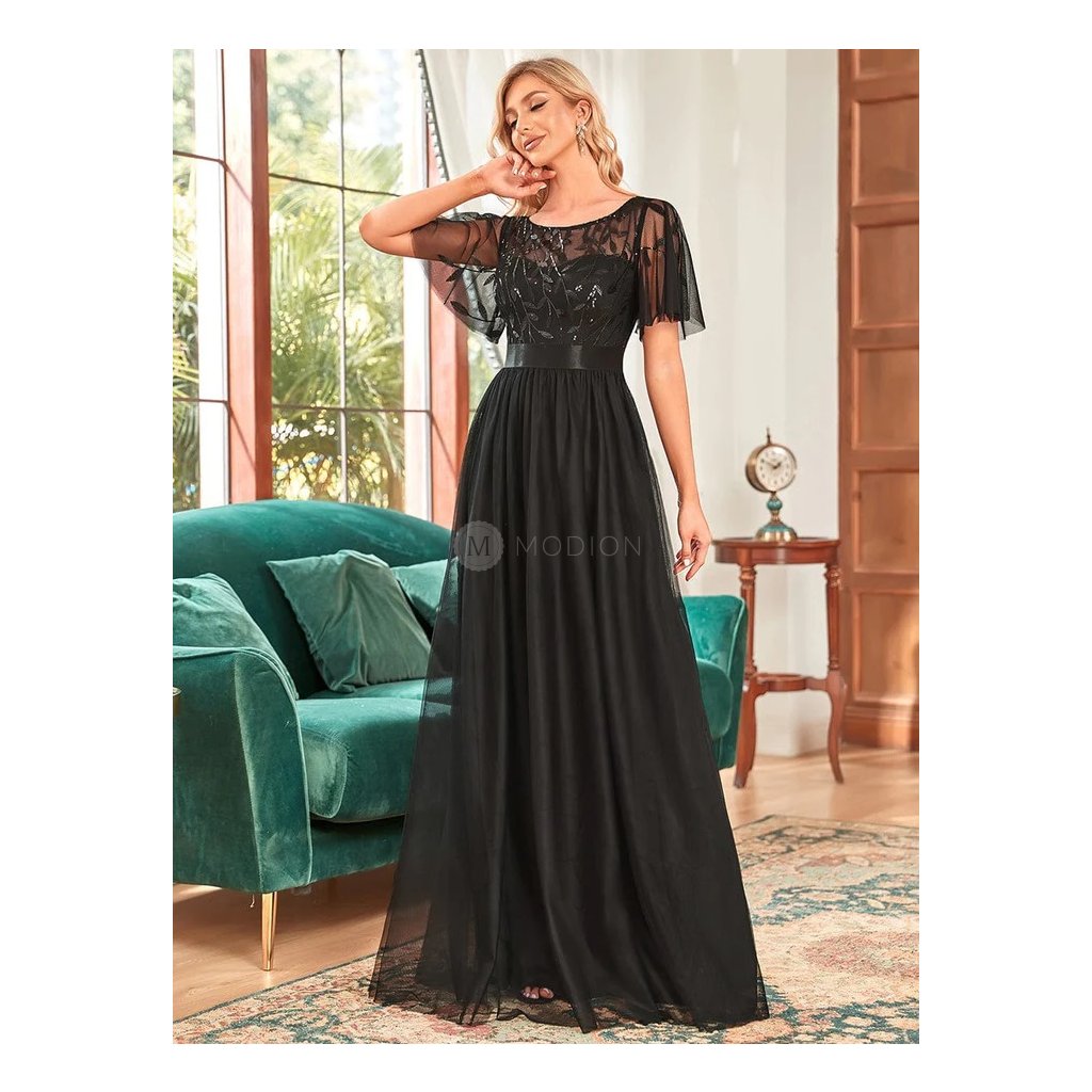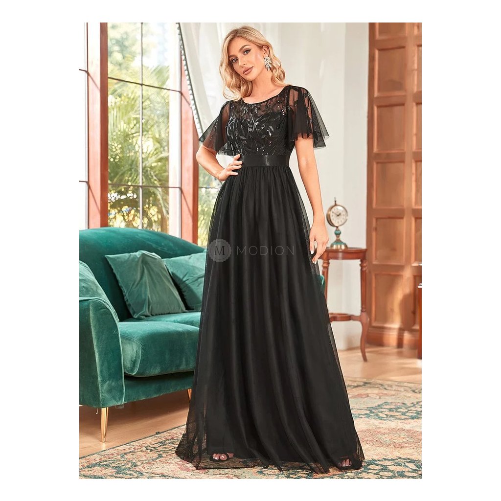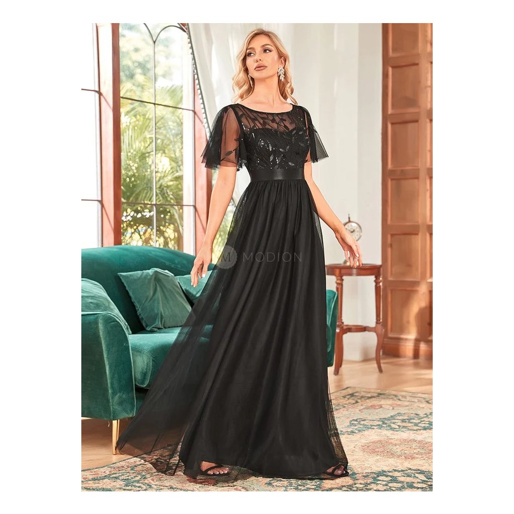 Černé společenské šaty dlouhé tylové s flitry – Ever Pretty EP00904BK48