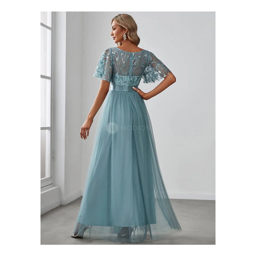 Společenské šaty modrozelené petrolejové dlouhé třpytivé s tylovou sukní - EP00904DB | Modion.cz