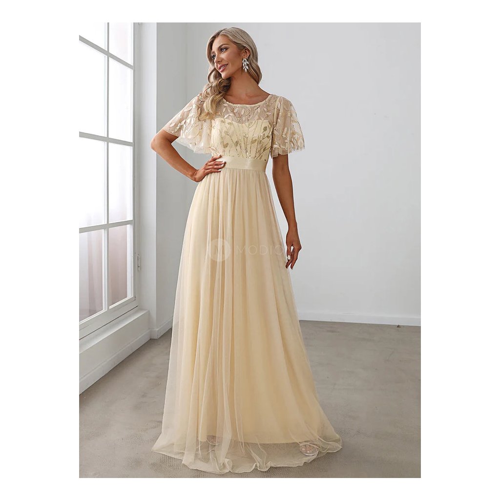 Zlaté společenské šaty dlouhé tylové s flitry – Ever Pretty EP00904GD