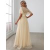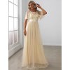 Společenské šaty krémově zlaté dlouhé třpytivé s tylovou sukní - EP00904GD | Modion.cz