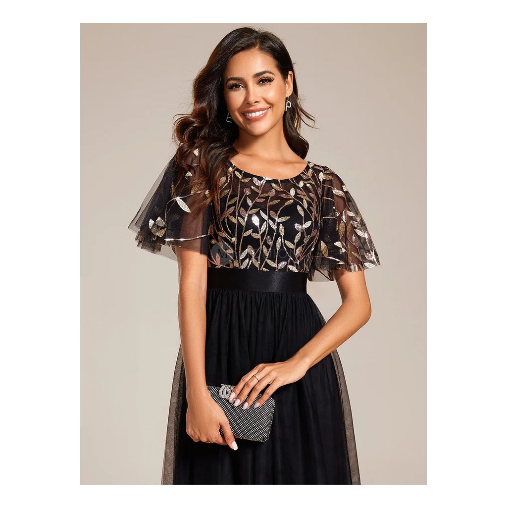 Černé společenské šaty dlouhé tylové s flitry – Ever Pretty EP00904KG