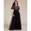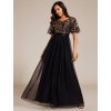Společenské šaty černozlaté dlouhé tylové s flitry - model EP00904KG