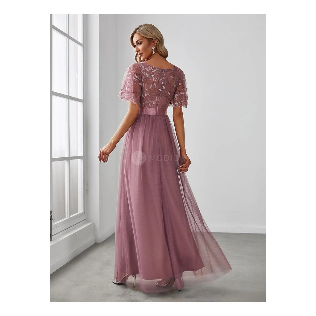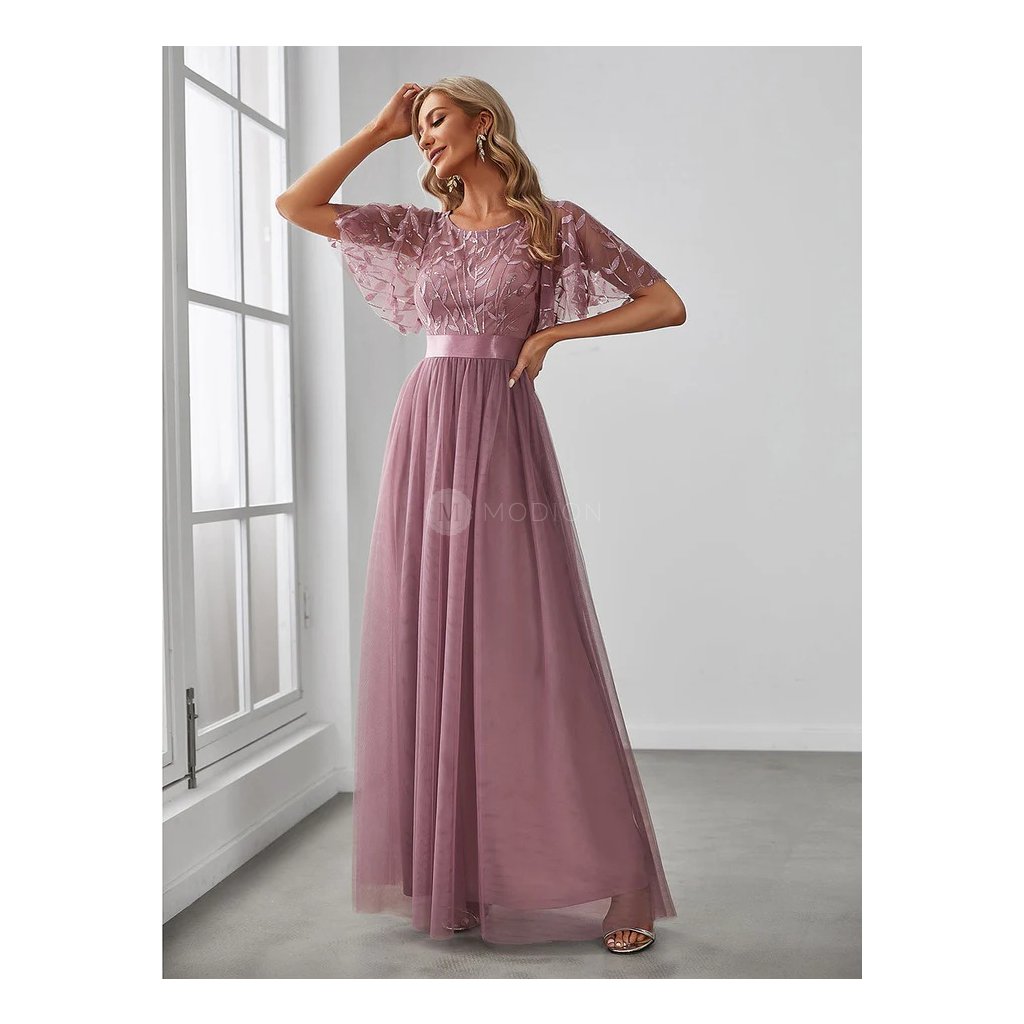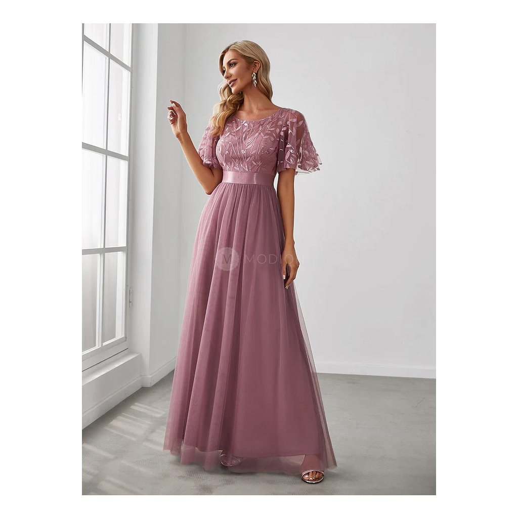 Společenské šaty starorůžové dlouhé třpytivé s tylovou sukní - EP00904OD | Modion.cz