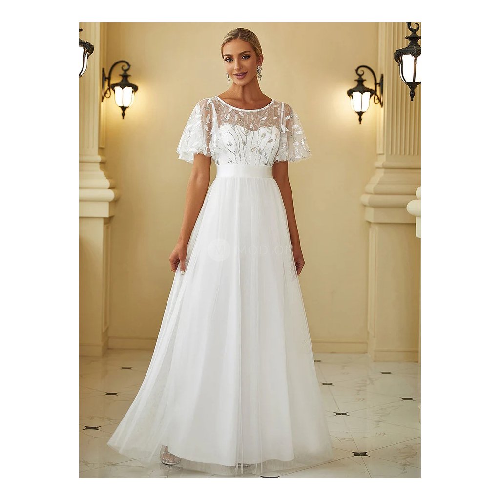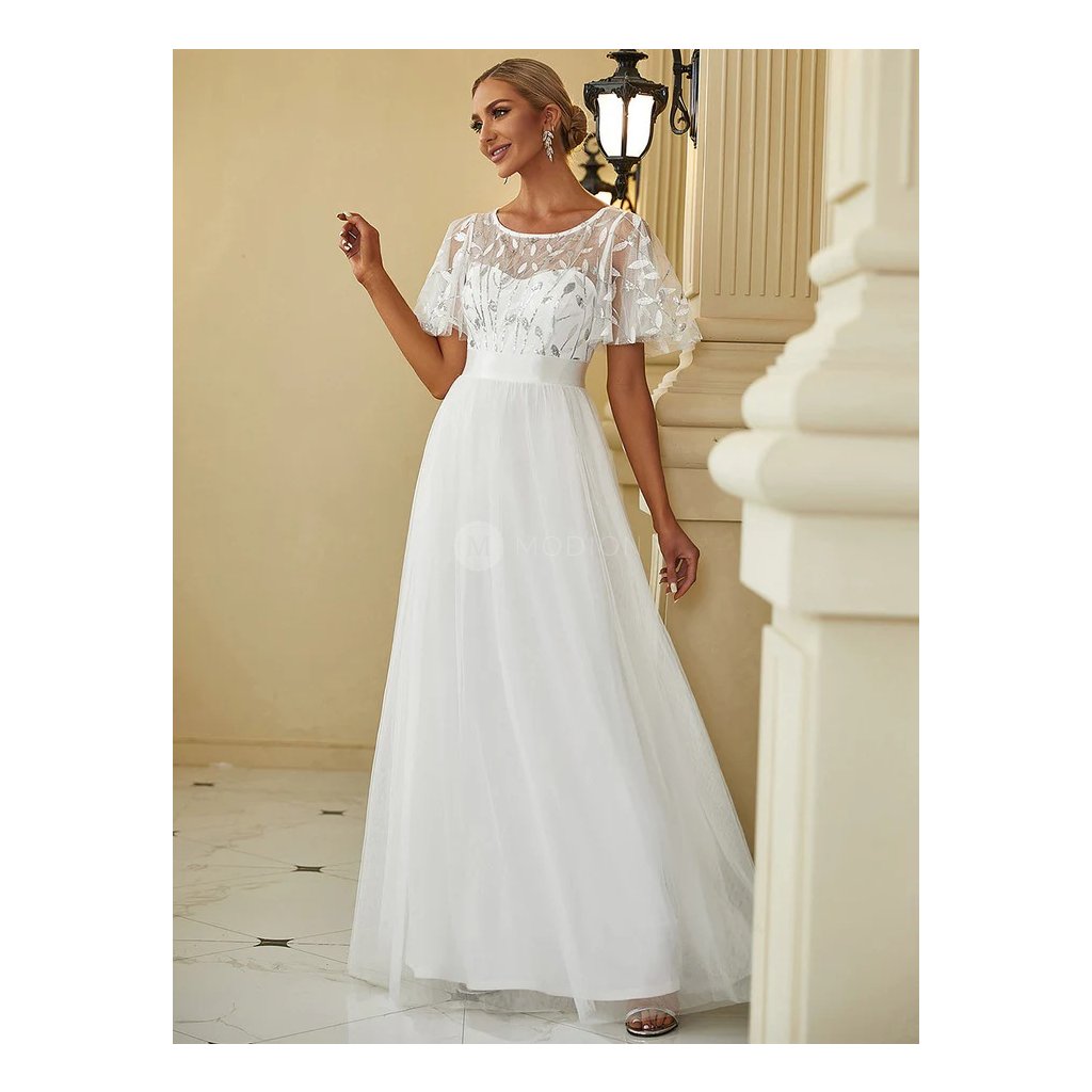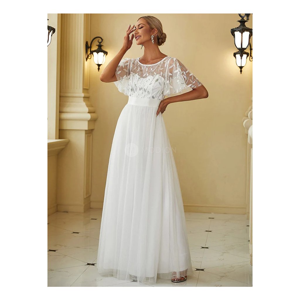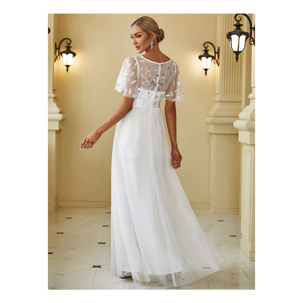 Bílé společenské šaty dlouhé tylové s flitry – Ever Pretty EP00904WH
