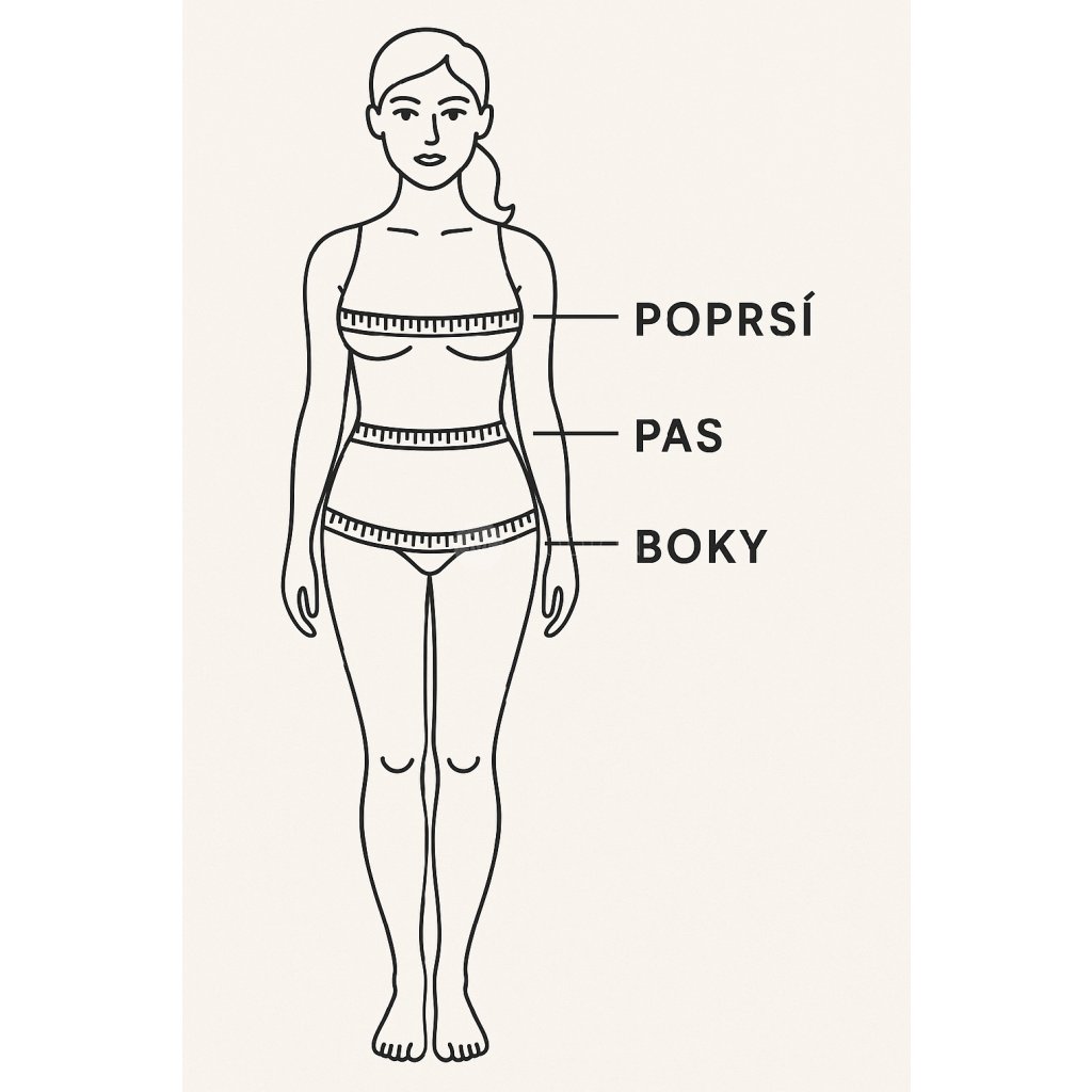 | VELIKOST | POPRSÍ (cm) | PÁS (cm) | BOKY (cm) | DÉLKA (cm) |
