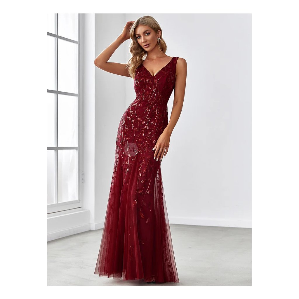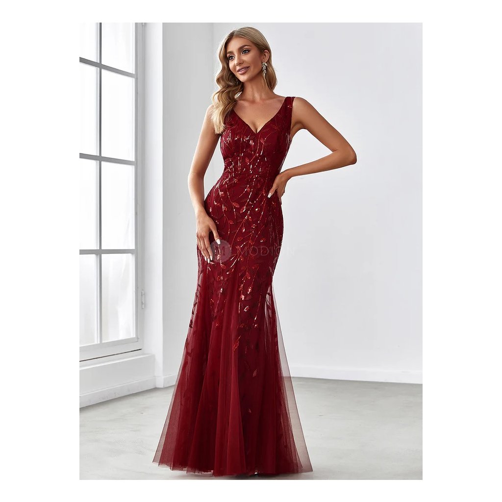 Červené společenské šaty dlouhé tylové s flitry – Ever Pretty EP07886BD