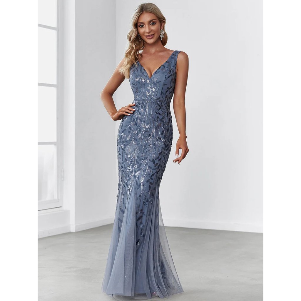 Společenské šaty dlouhé modré tylové bodycon – Ever Pretty EP07886DN