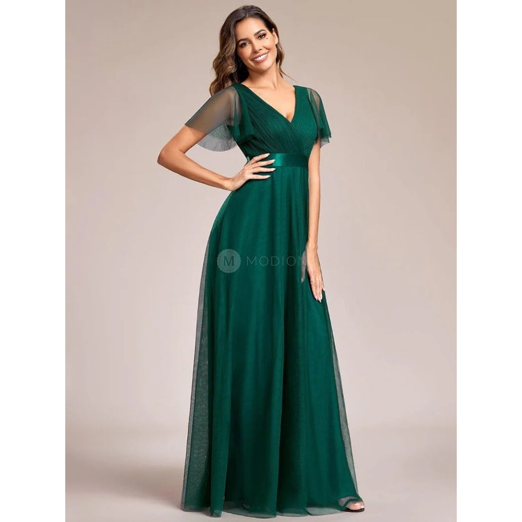 Společenské šaty zelené dlouhé tylové áčkový střih – model EP07962DG