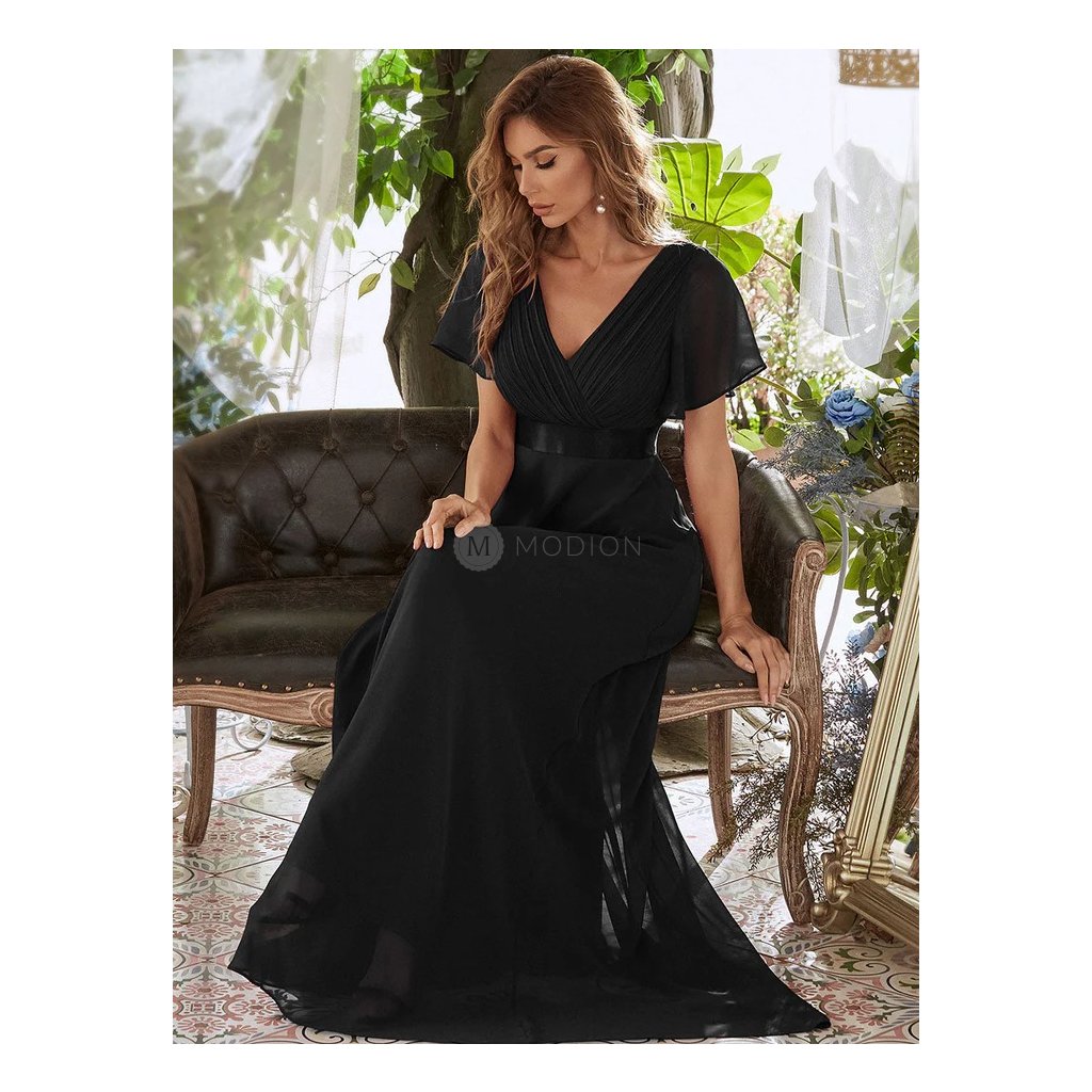 Dlouhé černé společenské šaty z lehkého šifonu působí elegantně, nadčasově a velmi žensky. Jsou ideální volbou pro ženy, které hledají univerzální slavnostní model vhodný pro široké spektrum společenských událostí.