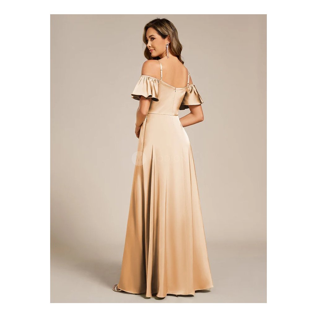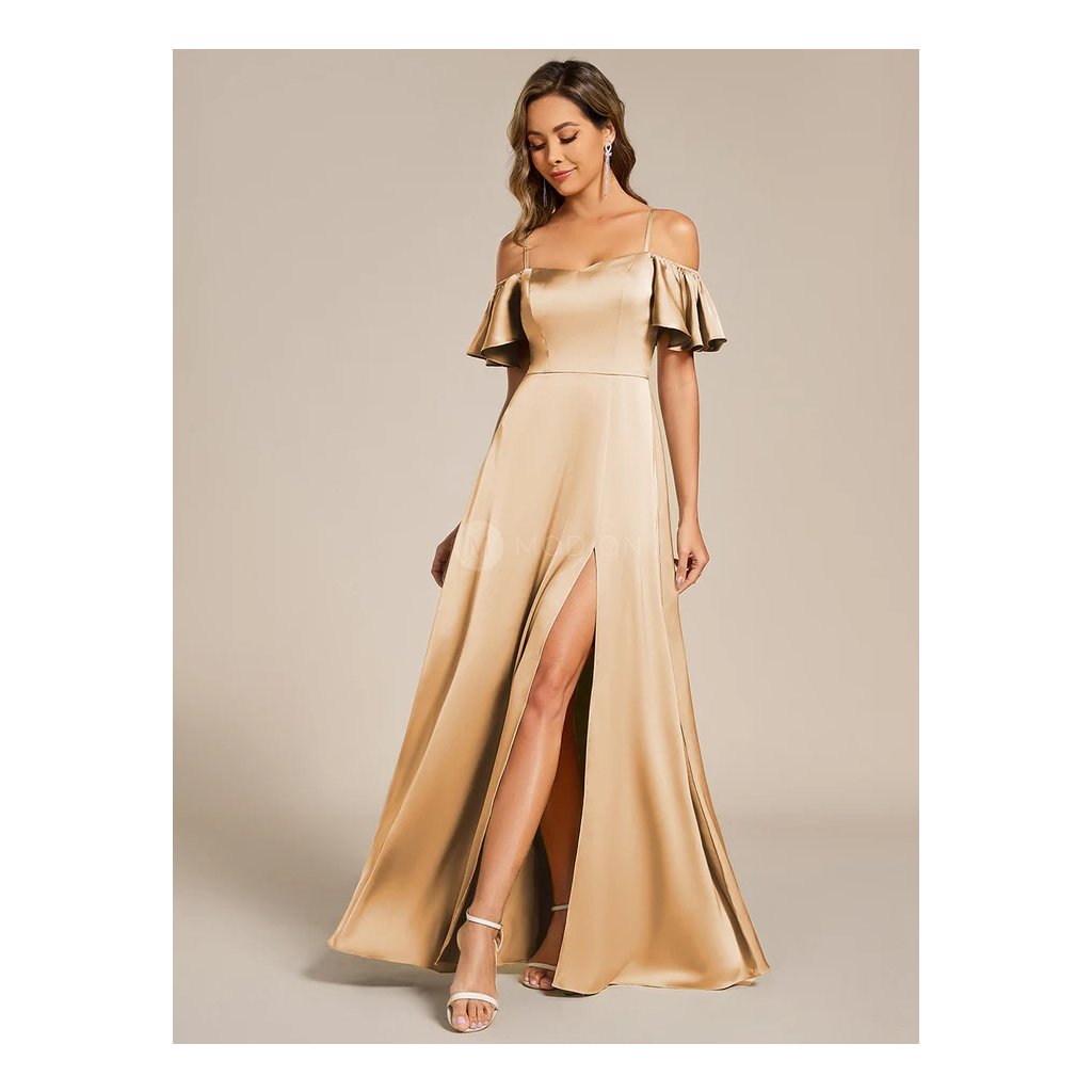 Zlaté společenské šaty dlouhé saténové s rozparkem – Ever Pretty ES00437CH36