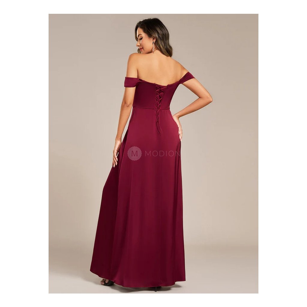 Společenské šaty vínové dlouhé saténové s rozparkem – Ever Pretty ES02320BD