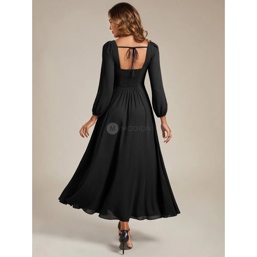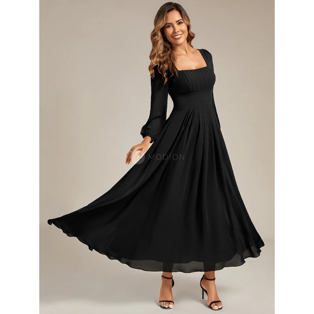 Společenské šaty černé dlouhé s čtvercovým výstřihem – model ES02522BK