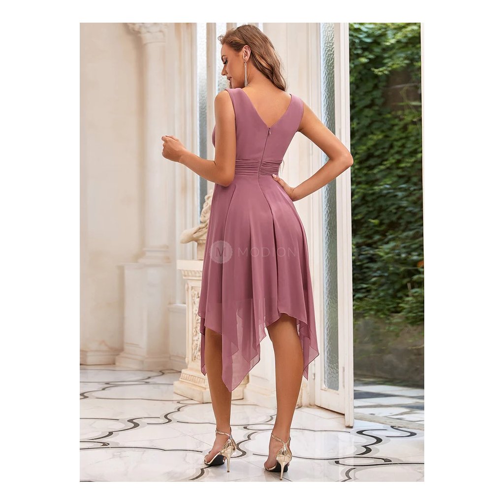 Ve starorůžových šifonových šatech se budete cítit jemně a elegantně, asymetrická midi sukně dodá originalitu i romantický půvab.