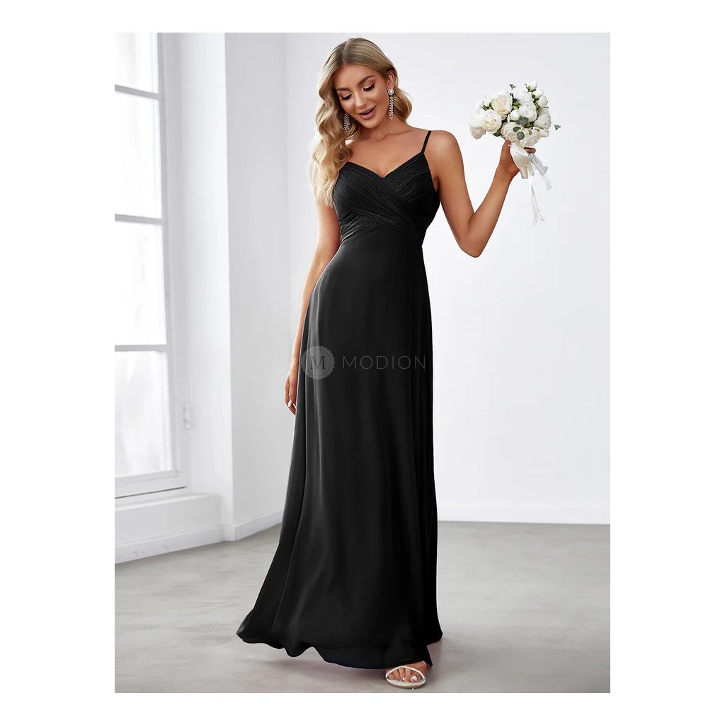 Dlouhé černé společenské šaty z lehkého šifonu na ramínka působí elegantně, vkusně a nadčasově. Jsou ideální volbou pro ženy, které hledají lehký a ženský model vhodný pro slavnostní i večerní události.