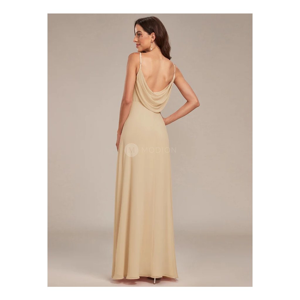 Společenské šaty dlouhé béžové šifonové – model ES80026CH